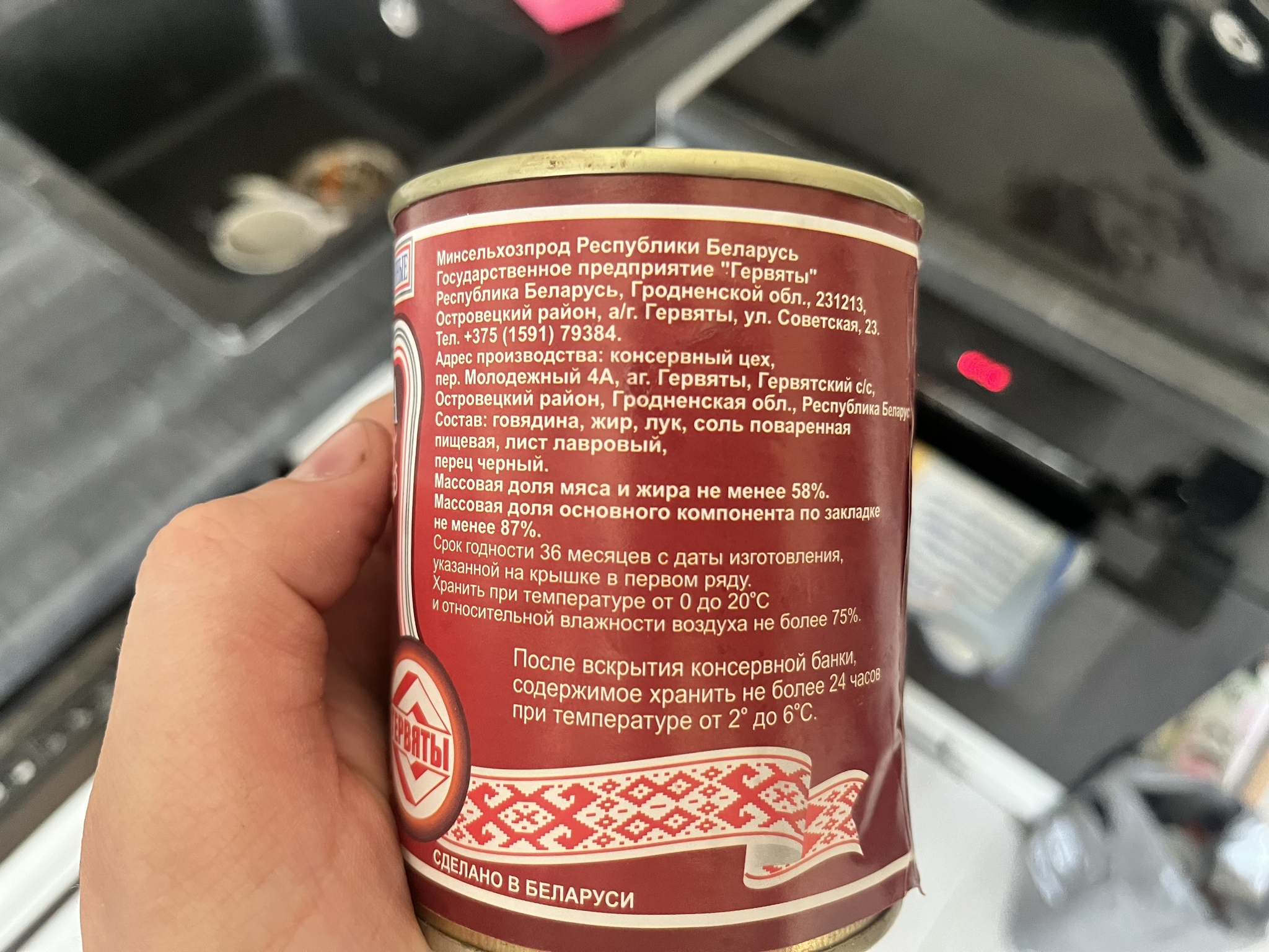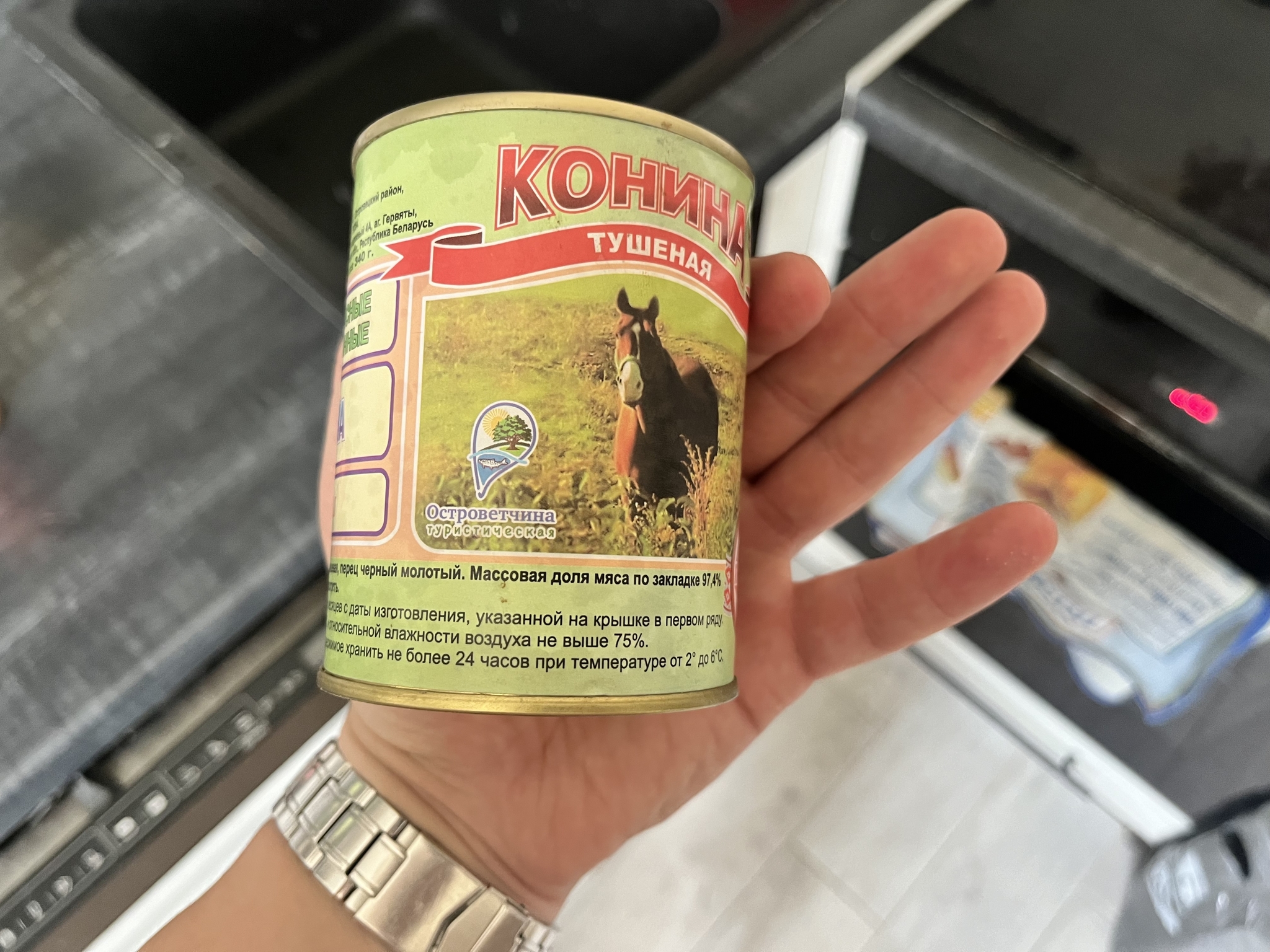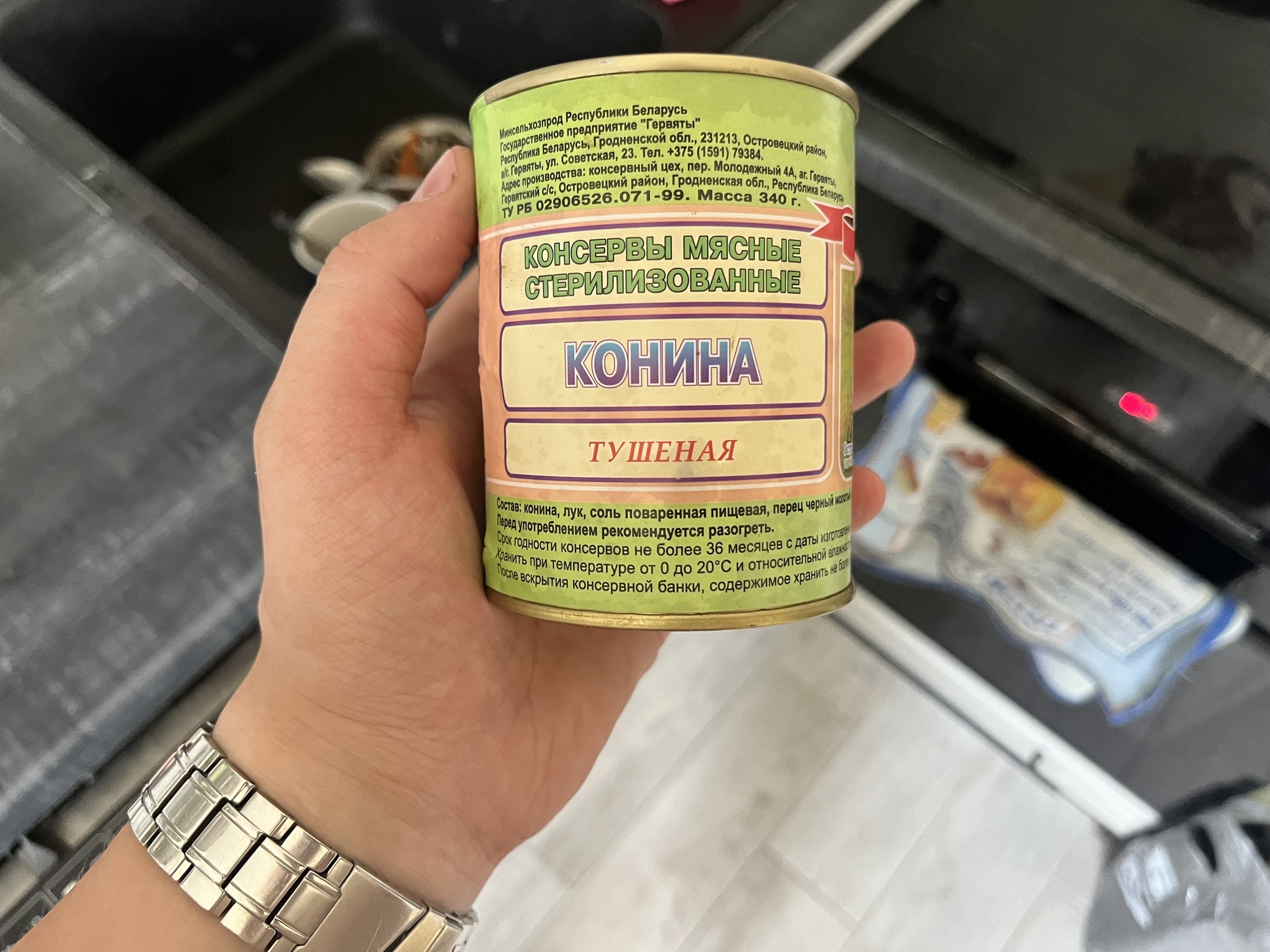 В РБ есть вот такой тушняк. СПК Гервяты производит, внутри банки мм 5 жира сверху и дальше просто куски мяса с гречкой просто нечто. Без жил, без кожи, без хрящей. Правда конина суховата если в чистом виде, там жира в ней нет). Читайте состав.
