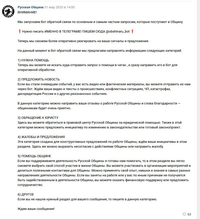 Значит Русская Община все правильно делает.