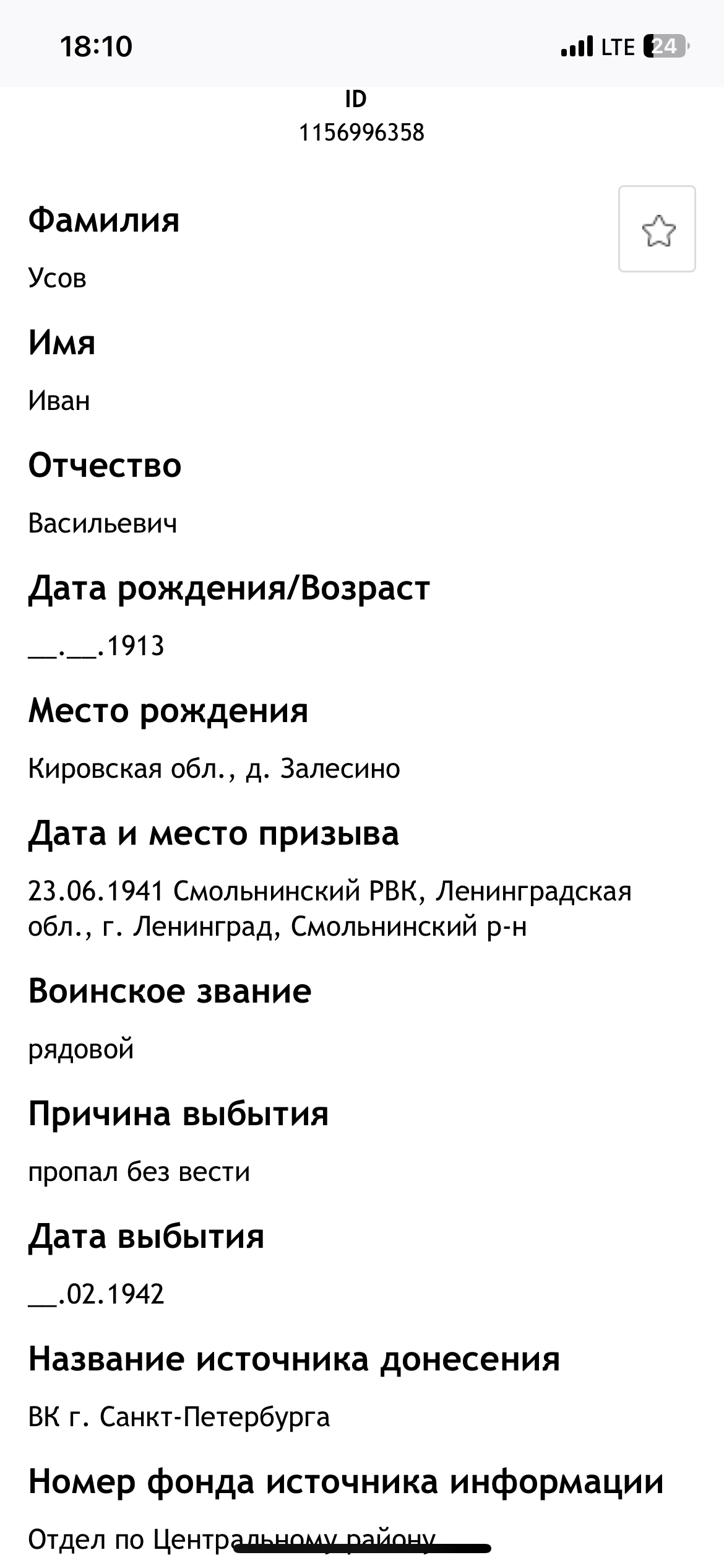 У меня дед пропал без вести под Ленинградом. Ушел с группой в разведку, и никто из них не вернулся. А потом, через 75 лет, в 2018, нашли его медальон. Торжественно перезахоронили останки рядом с бабушкой, с салютом, оркестром. Мама моя единственная из детей, кто остался жив, была на похоронах. Поисковики сказали, что это очень, очень редко бывает.
