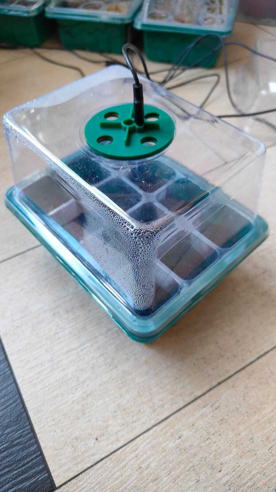 Вместо теплички берёте обычный прозрачный контейнер, желательно с прозрачной крышкой и застёжками, чтобы крышка плотно прилегала. В него можно поставить стакашки с клубеньками, а можно и просто мхом дно выложить и клубеньки в него воткнуть, увлажнить мох, закрыть крышку и забыть на месяцок.)
