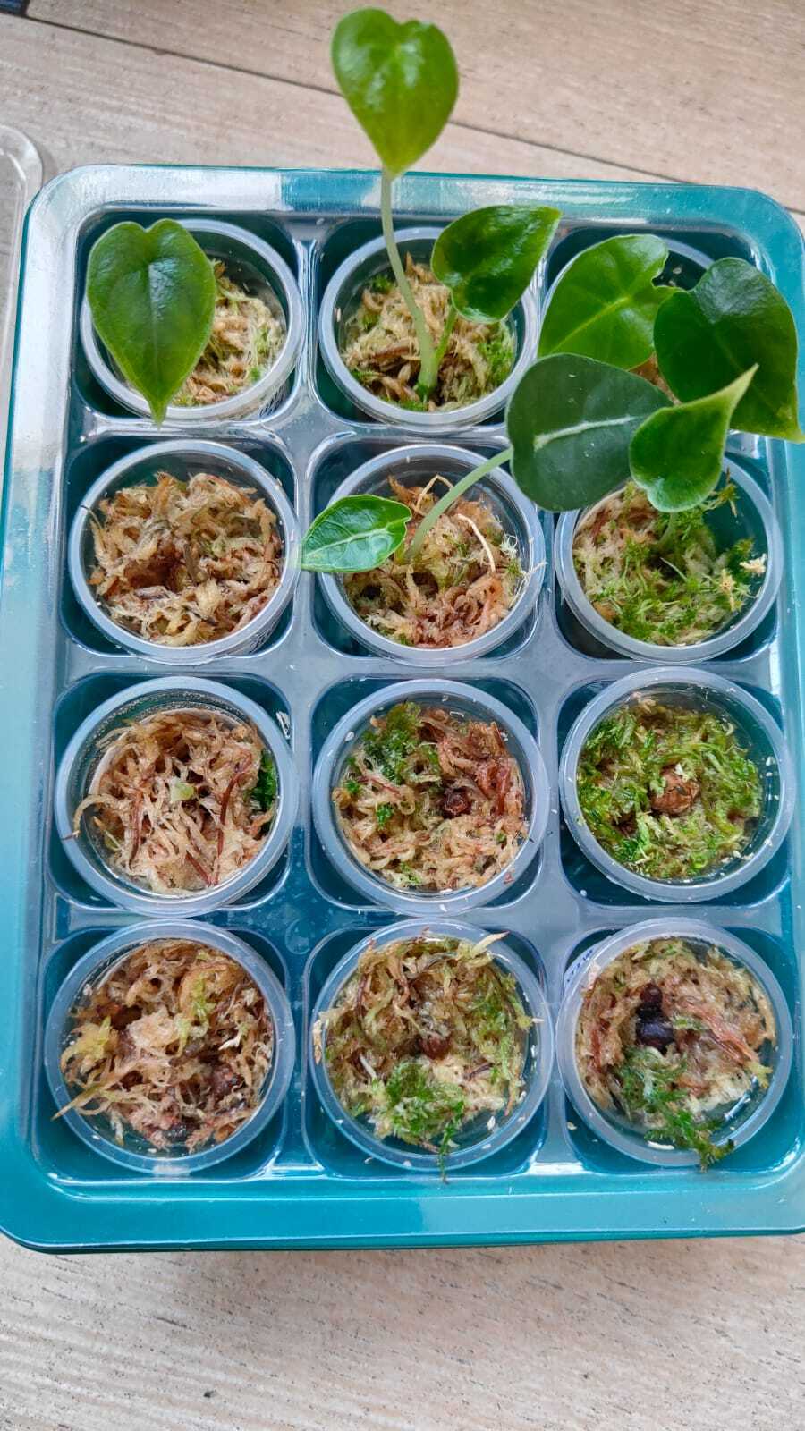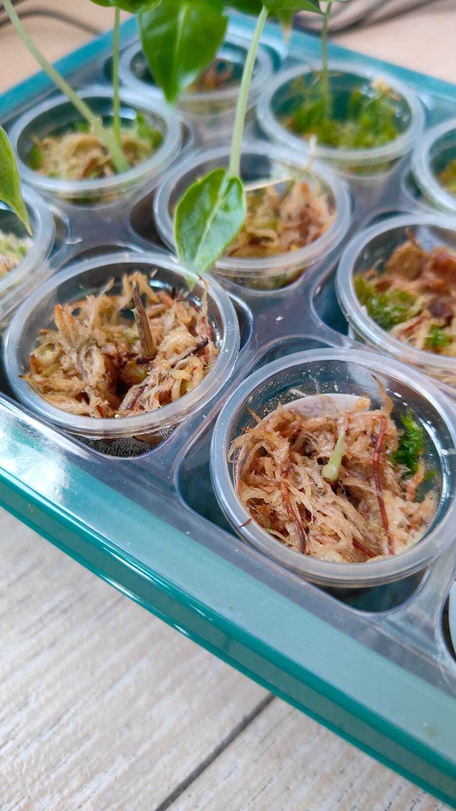 Я такие проращиваю вообще в 20 граммовых стаканчиках. Мох можно заказать на ВБ или Озон, стакашки тоже. Они там есть всяких разных размеров. Досветка нужна тогда, когда клубень дал первый листик, но я не от большого ума тоже раньше досвечивать начинаю.)