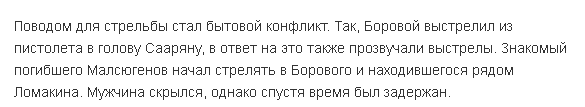 Однажды, в 2017 году в Краснодарском крае в ресторане бухали полковник Росгвардии, хозяин охранного агентства и армянский "бизнесмен" с не менее армянским другом. Возник внезапный конфликт, хозяин охранного агенства достал пистолет и выстрелил в голову армянскому "бизнесмену". Точка, конфликт окончен.