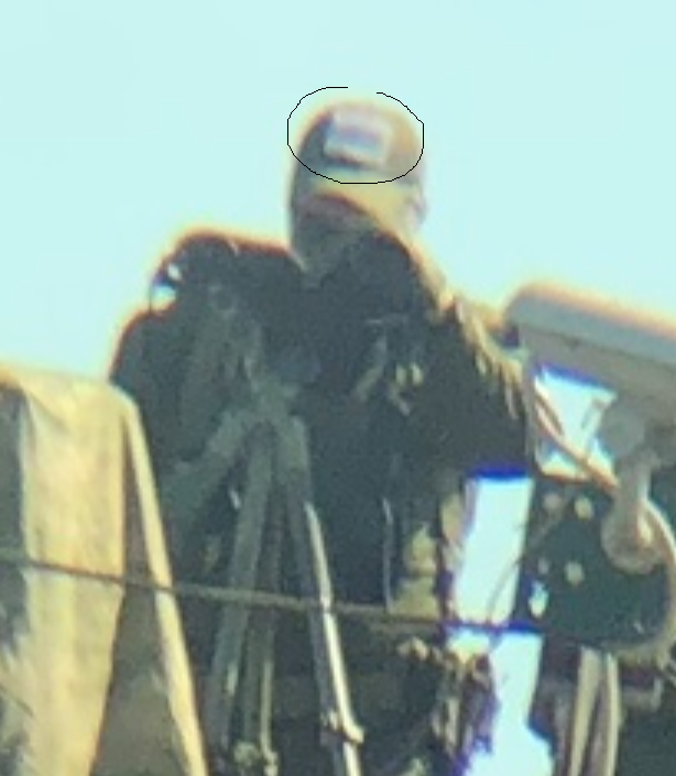 Я не против, я не разбираюсь в вещах, которые пришивают на одежду военные. Вот кадр крупным планом этого угла ГУМ, которы фотал в бинокль. Странно конечно, что югославские снайперы там.