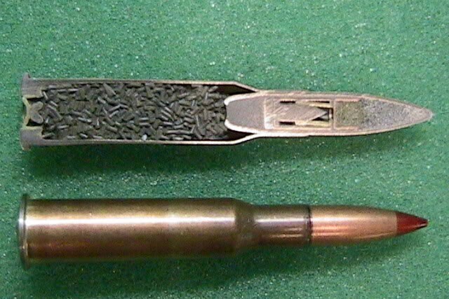 Я где-то видел в ютубе (кажется разрушительное ранчо) ролик про патроны, у которых составные части верёвочками связаны и при вылете они подкручиваются и разделяются, но верёвочка не даёт разлететься. Не смог сходу найти.