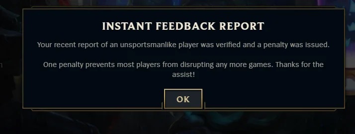 3. Несколько уровней санкций - сначала лимит на 5 сообщений в чате / 15 минут (или чет такое), затем мут в чате на 5 игр (надо еще не получить репорты за другое), дальше есть обязанность отыграть 5 нормалов, чтобы вернули ранкед, ну и бан аккаунта на какое-то время.