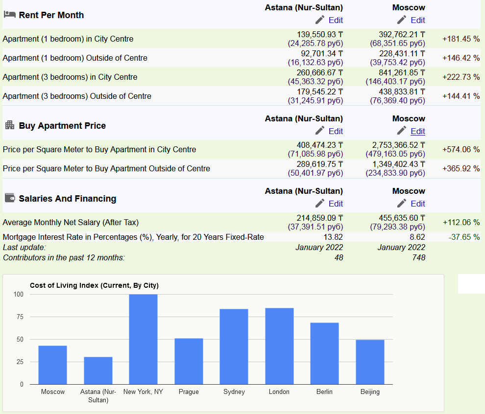 150000 тенге - 25000 рублей, у нас средняя по стране 54000 рублей( по поиску средняя ЗП в Казахстане 250000 тэнге, это 42000 рублей. ) ЗП больше, а цены я так понял не сильно дешевле...