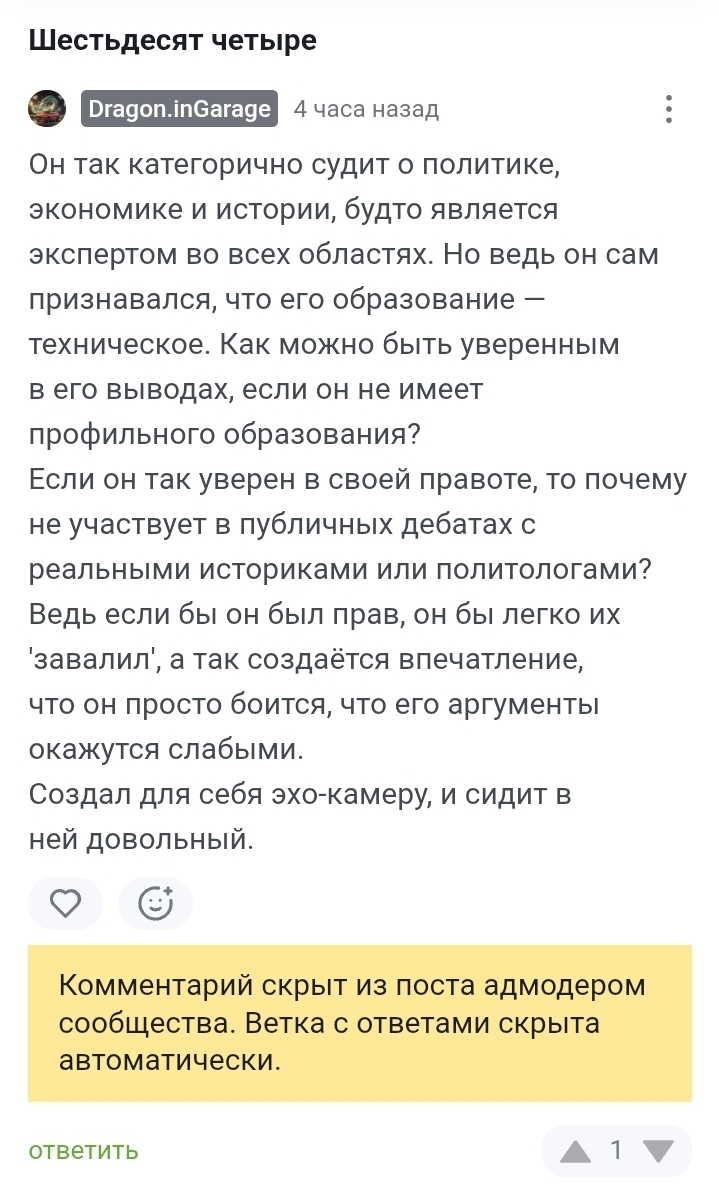 "Комментарий скрыт из поста адмодером сообщества. Ветка с ответами скрыта автоматически."