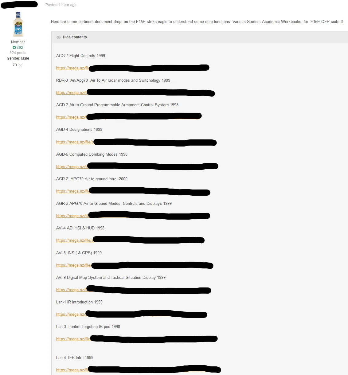 Едва ли день прошёл, а на форум слили кучу мануалов по F-15E.