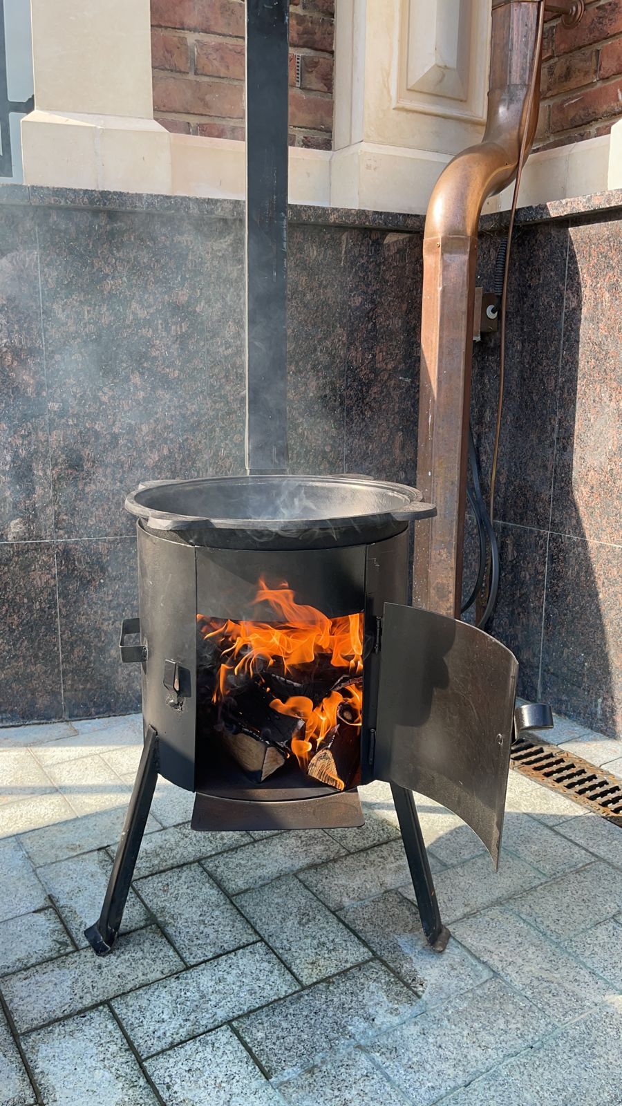 Готовлю я в казане на свежем воздухе, у меня 10л казан из чугуна с очагом.