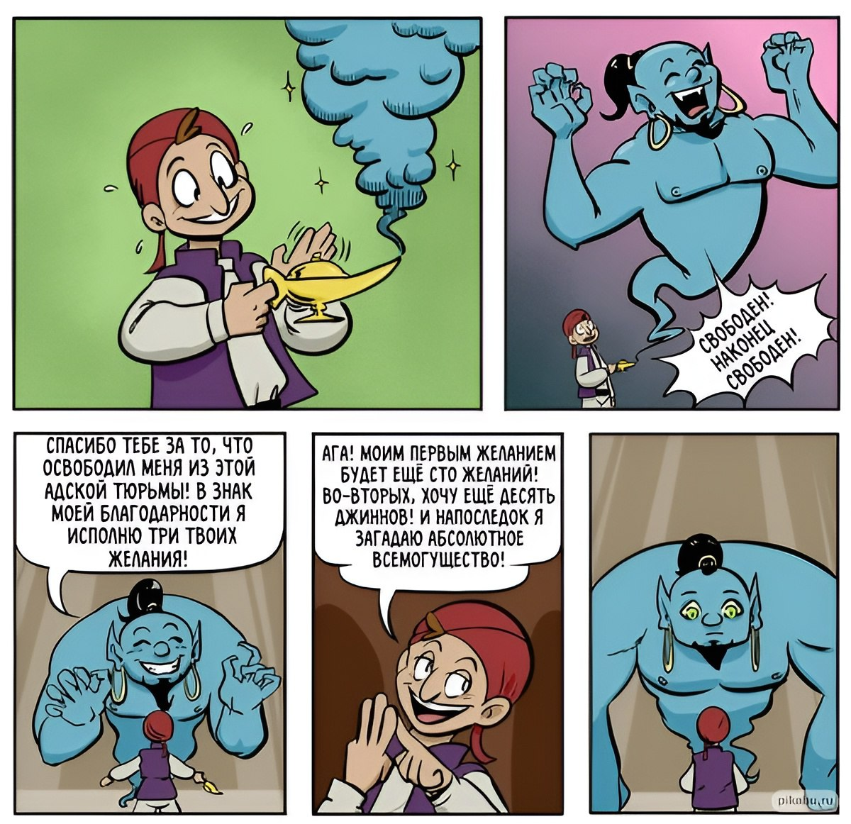 1107 romanpro Ответ на пост «Сломал Джинна»2 1 год назад Картинка с текстом Комиксы Джинн Telegram (ссылка) Повтор Ответ на пост Три желания 15 4 Ещё 0