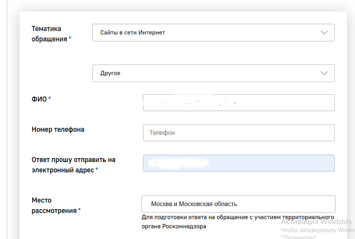 Идем на сайт роскомнадзора в отдел обращений: https://rkn.gov.ru/treatments/ask-question/