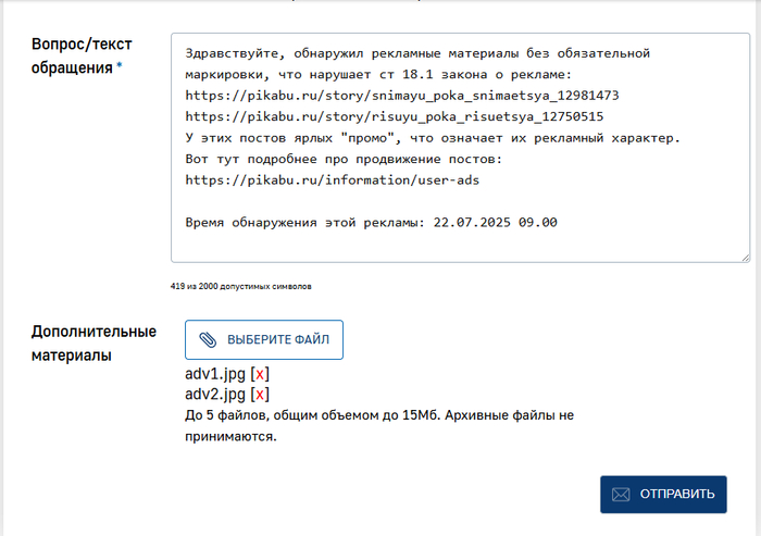 Возможно, не все знают, что сейчас вся реклама должна быть обязательным образом промаркирована. И Пикабу напоминает пользователям о необходимости маркировки рекламных постов: