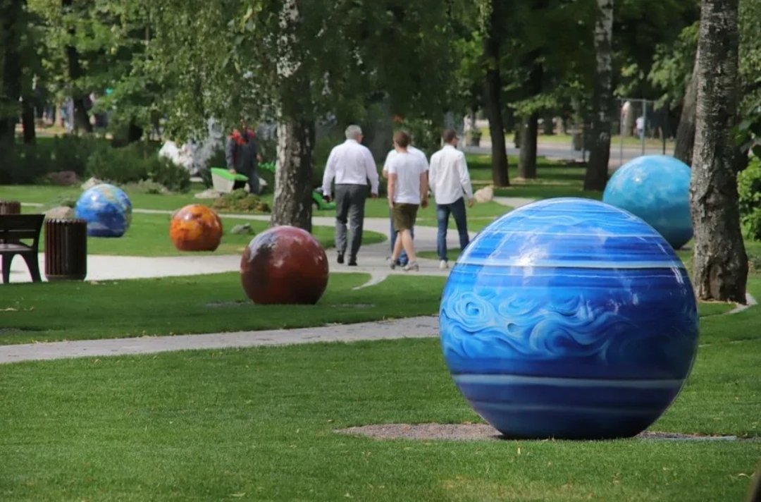 Мне кажется, самый интересный факт, который можно рассказать об этой модели Солнечной системы, что модель лукавит с масштабом. А модель с корректным масштабом мы физически не сможем презентовать. При подобном размере Солнца (сколько тут? Пусть будет 15 см для удобства) Земля бы была в 15 метрах от него. И размером с ядрышко гречки, если не меньше (~1,5 мм). Такая модель была бы не очень красивой.