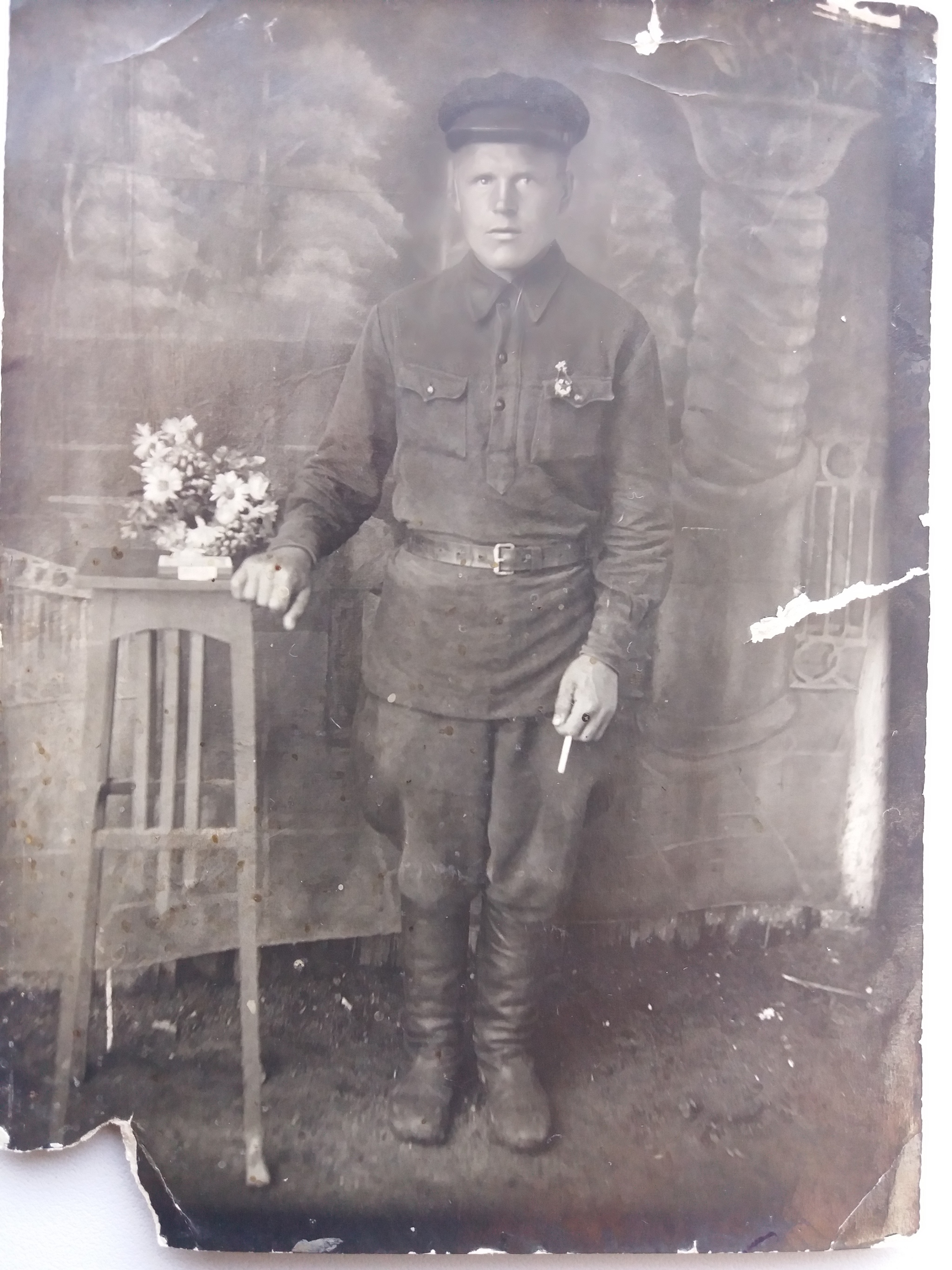 От апрельской контузии, в 1945г. на Одере, он зрение потерял. Думали оно вернётся, врачи даже обещали, но оказалось нет. Бабушка рассказывала, что она тогда после работы домой пришла, а он на крыльце сидит, бледный, глаза закрыты, руки раскинул и в каждой по пучку волос из головы... Позже рассказал, что врачи бессильны и зрение не вернётся. Различал только свет и темноту. Но ничего, вырастили они пять дочерей, красивых, дружных и умных. Был ещё мальчик в 49 году, но он и суток не прожил, похоронили. Никогда девчонок не бил, поругать немного мог, посетовать, а руки никогда не распускал, даже голос практически не повышал, и на бабу Машу тоже. Не пил. Мама рассказывала, что выпившим его только один раз видела, когда он от кума приехал, ездил за какую-то мебель договариваться. Всегда ходил в брюках и рубашке, застёгнутой на все пуговицы, даже самую верхнюю. Говорил, мол у него огромная ответственность, ведь пять дочерей растит, и не пристало взрослому мужику перед маленькими да молодыми дочками оголяться.