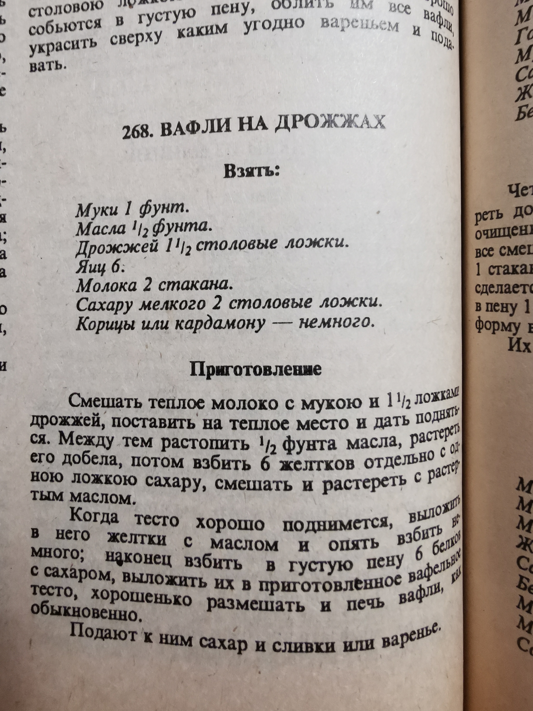 39 Niibot Поваренная книга Пикабу Ответ на пост «Советские вафли»3 2 года назад Вафли дореволюционные Взято из кулинарной книги 1875 года Г-жа Коломийцева "Общедоступный и вкусный стол" (издание современное, 1992 год). Рецепт Кулинария Приготовление Десерт Ингредиенты Выпечка Ответ на пост Длиннопост 1 Ещё 0