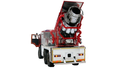Машина воздушно-капельного тушения. Вода подается в сопло реактивного двигателя, за счёт чего создается струя водяного пара. Принимал непосредственное участие в создании этой зверюги.)
