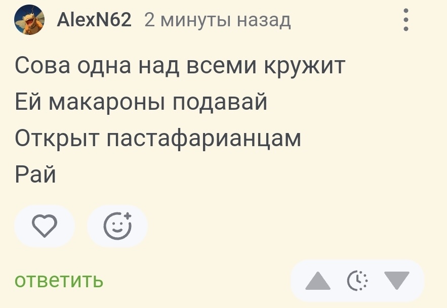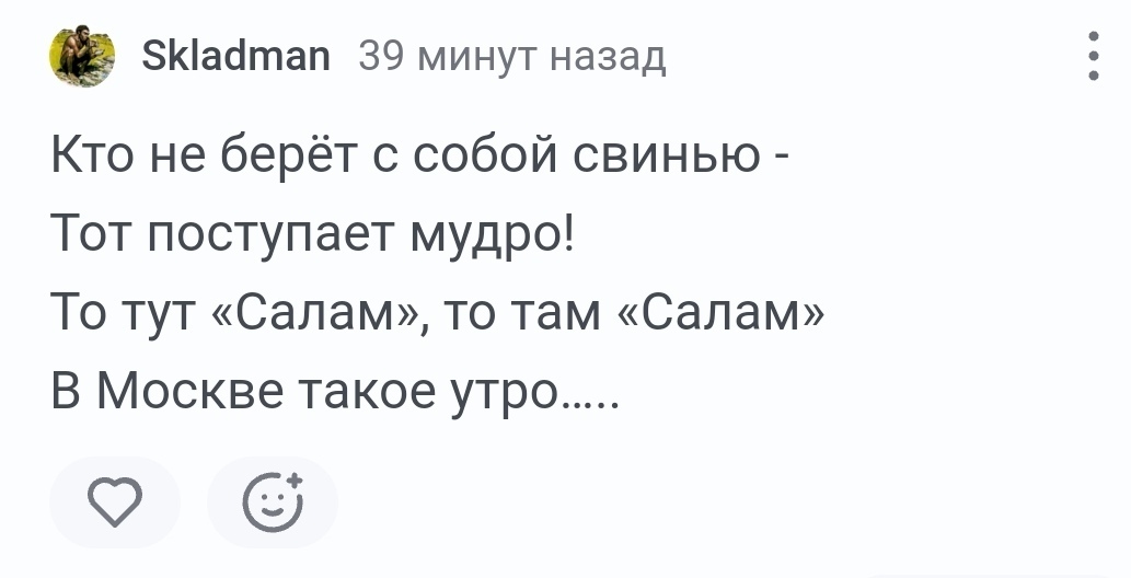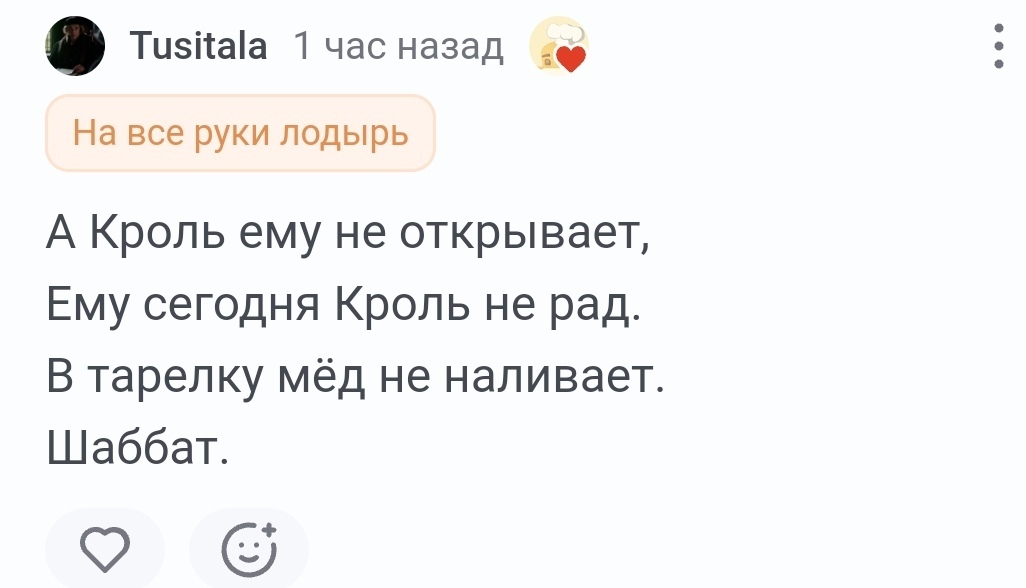 140 sergei.baiduk Юмор для всех и каждого Юмор Ответ на пост «Современный вариант»1 1 день назад Собрал всё лучшее вместе : И четверостишие от себя: Познал "Дао" ослик Иа, Судьбе отверг сопротивление. Есть или нет наличие хвоста — В жизни плывёт он по течению. Картинка с текстом Юмор Винни-Пух Харам Народное творчество Переписка Ответ на пост Длиннопост Комментарии на Пикабу 10 6 2 1 1 Ещё 0