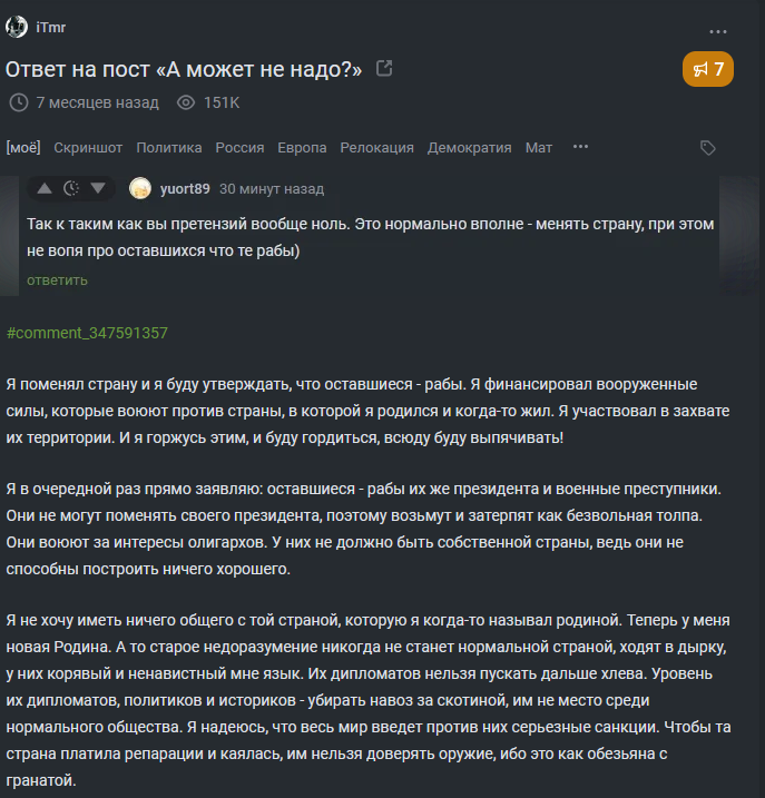 Обновлено(2): Добавил тег "без рейтинга". 18:55 15.11.2025, уже 1328 плюсцов и 575 минусов. То есть в любом случае в "горячем".