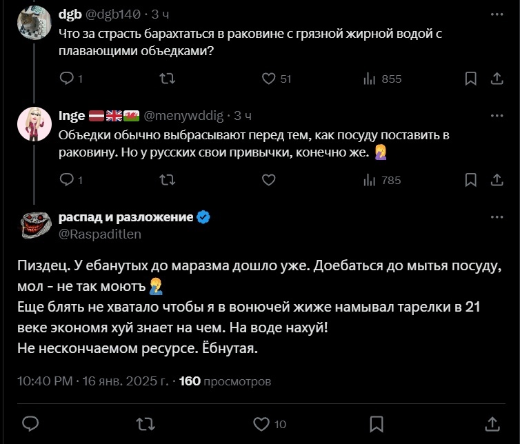 6917 Bochulaz Ответ на пост «Стандартная ситуация»22 10 месяцев назад Продолжение диалога. Латвия X (Twitter) Скриншот Мытье посуды Ответ на пост Мат Вода Комментарии Волна постов 502 8 7 6 6 Ещё 0