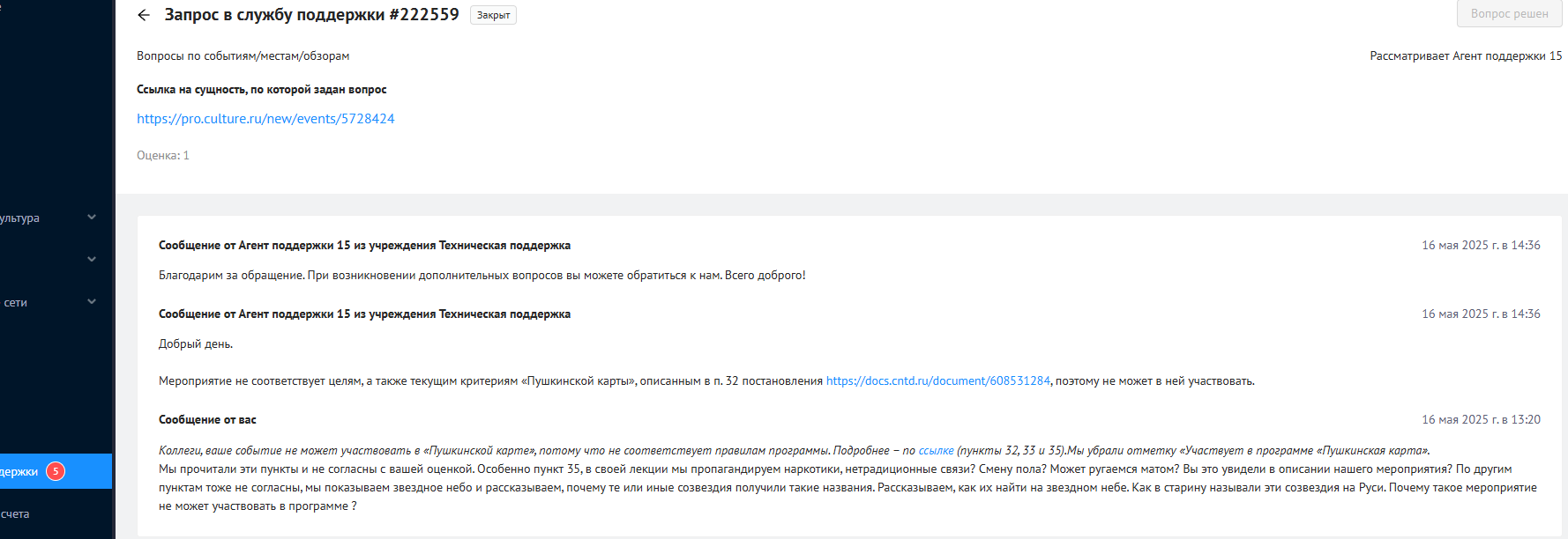 Пример три который как раз к делу относится. Событие - "Легенды и мифы звездного неба" не пустили на Пушкинскую карту по причине загадочных пунктов 32, 33 и 35. Полезла почитать и первые два, ладно, пофиг, но 35! Ниже скрины
