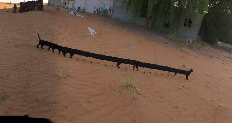 Если подумать, известный мем «панорамный кот» — это тоже временной параллакс! Вот только быстродействие тут — те несколько секунд, что мы ведём аппарат. А программа сшивания панорам имеет подобие интеллекта, и вместо растянутого/сжатого зверя получается вот такая кошачья многоножка.