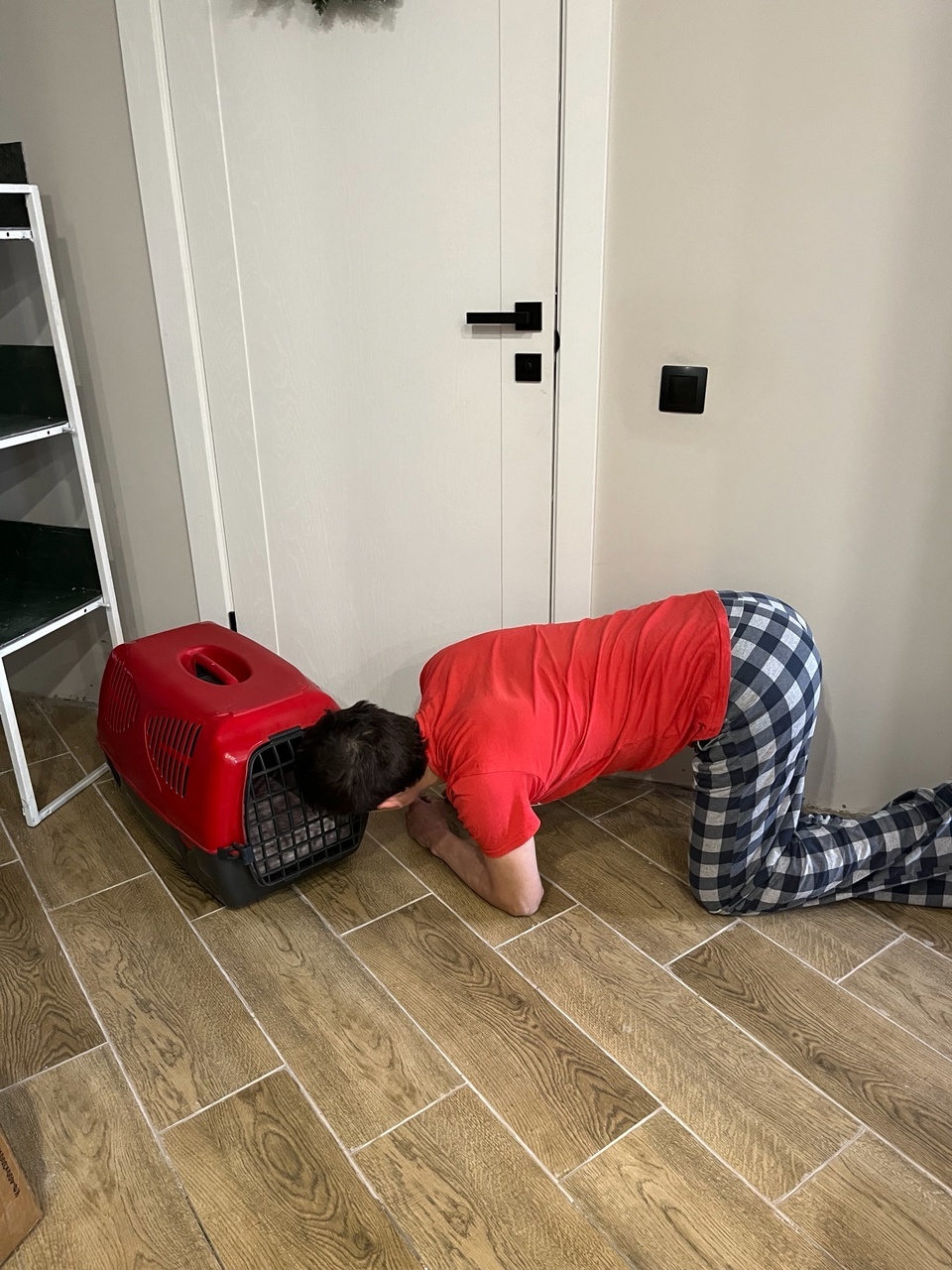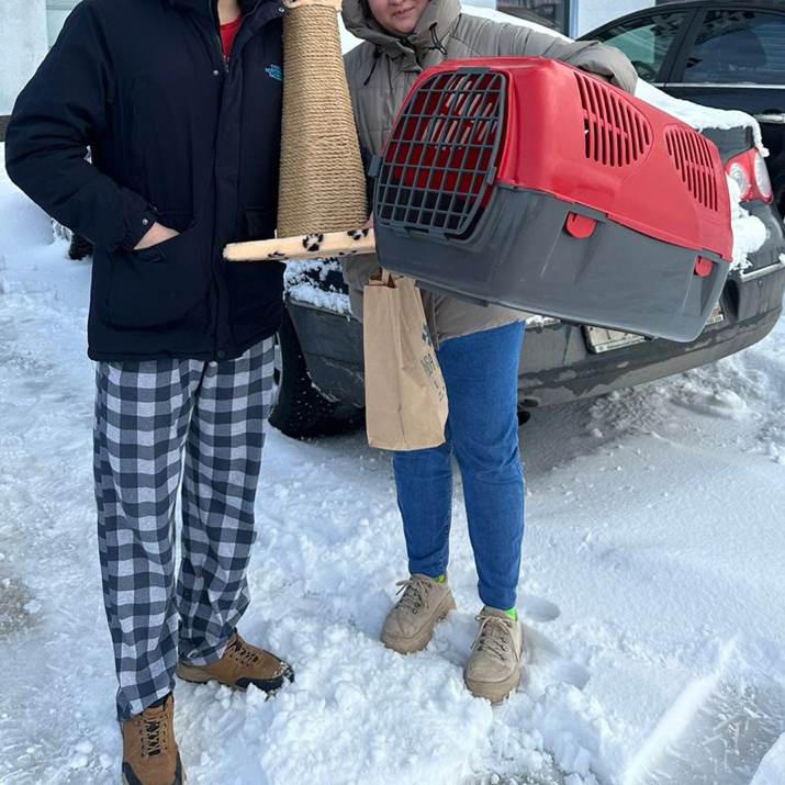 Принесли домой, оставили переноску открытой, но к сожалению кошка не вылезла ни через час, ни через 5. Пришлось ее выманивать потихонечку, что бы не травмировать ни ее, ни уже имеющегося кота.