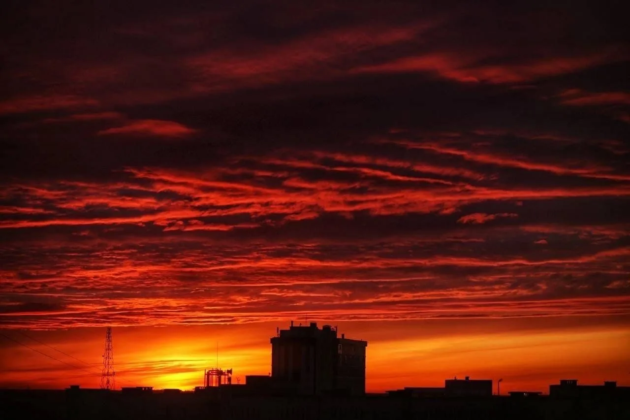 А если закат кроваво-красный, это может означать, что в воздухе летает много пыли, влаги и прочего.