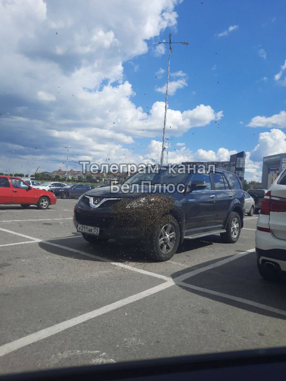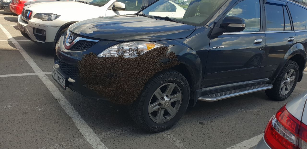 Сегодня в Белгороде, возле ТРЦ Ситимол, рой пчел оккупировал автомобиль.