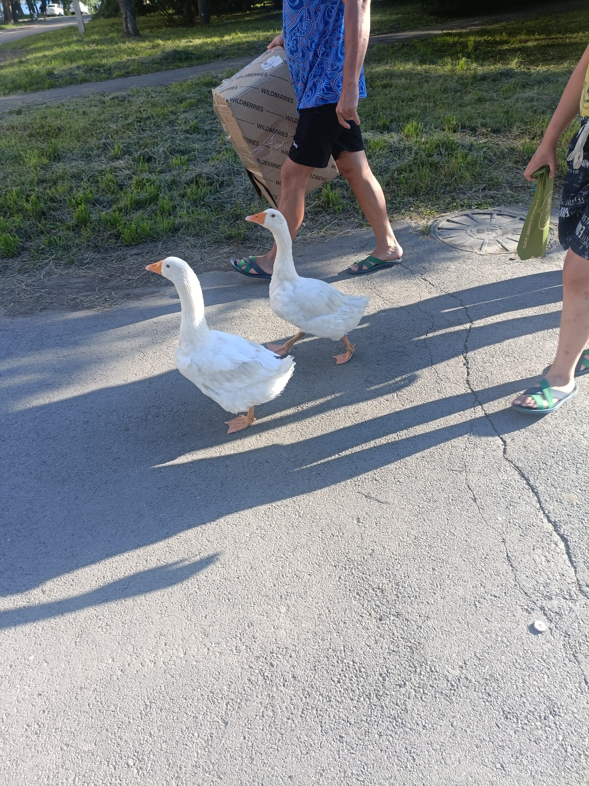 У нас в городе тоже мужик есть, гусей держит, гуляет с ними по городу. Его почти во всех районах видели, уже местная достопримечательность, можно сказать.
