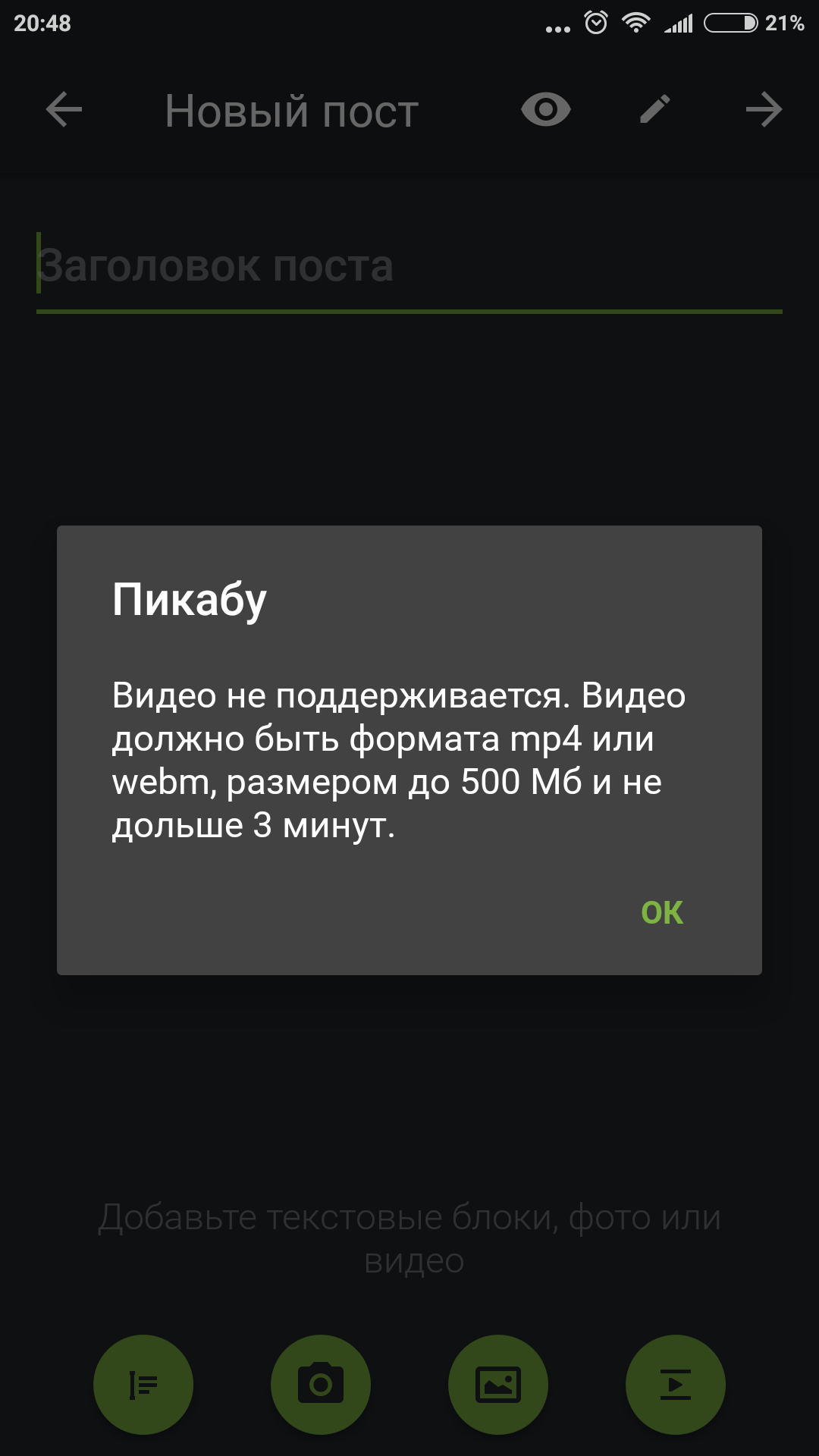 Мне кто нибудь подскажет почему когда я пытаюсь сделать пост с видио из этого приложения, Пикабу возмущается?