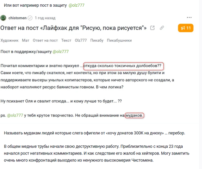 Всегда выражал поддержку и продолжу выражать всем своим друзьям и коллегам авторам когда их травят.