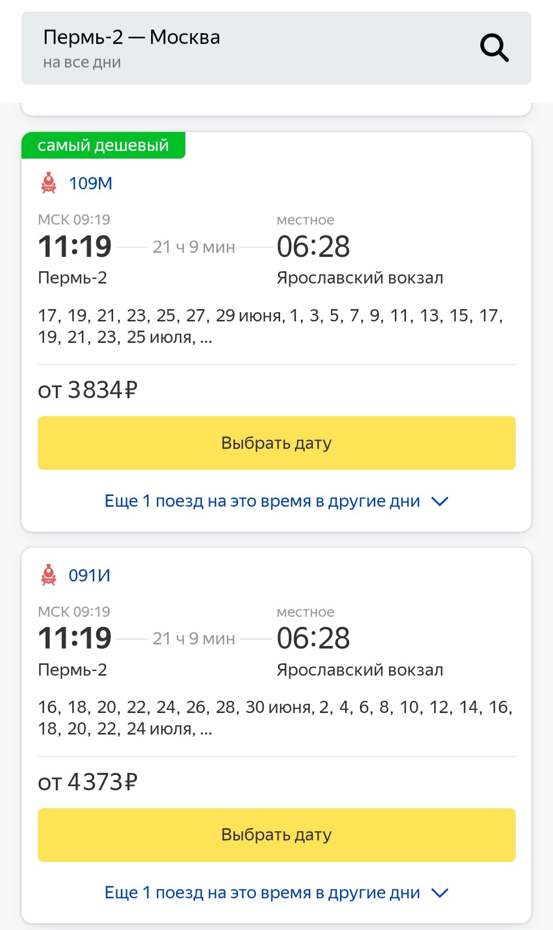 Теперь по билетам на поезд, запрос в поиске тот же: