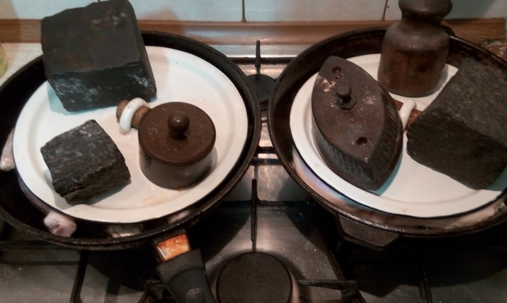 Ребята. Это просто массивная чугунная сковорда. Всё. В качестве гнета я использую круг вырезанный из обычной сосновой доски и любые гири, утюги, камни и пр. вымытое до блеска. Если нет доски - вполне подойдет крышка от кастрюли соответствующего размера. Гнет тоже должен нагреваться и принимать участие в жарке, поэтому водой в качестве гнета пользоваться не стоит.