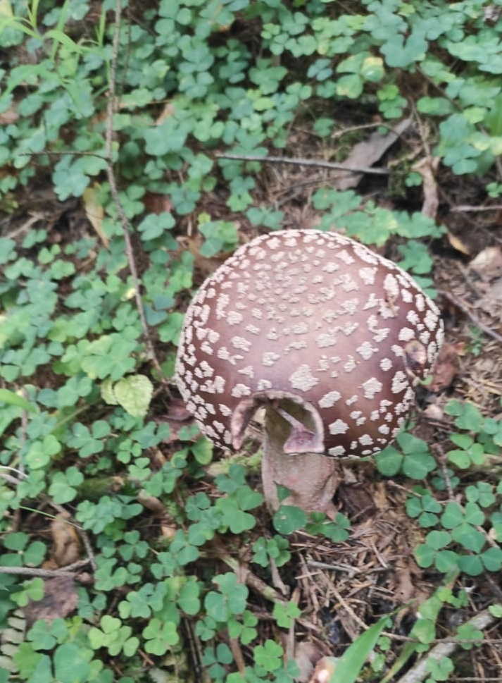 А я на днях во что нашла, люди, увлекающиеся микродозингом сказали, что это королевский мухомор, типа ценный гриб для них. Фото делала в тени, но он реально шоколадный, не красный.