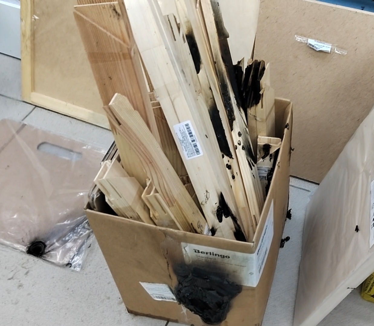 Хорошо продавцы рядом и какой-то покупатель грамотный, успели потушить и его и коробку в товаром под ним, которую он успел поджечь за секунды!!!