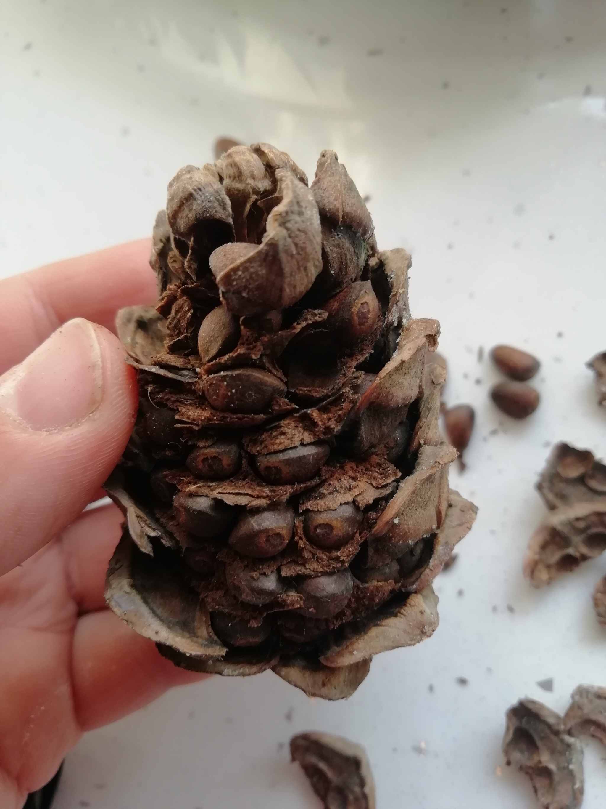 Оказывается, вылущенные из шишки орешки надо сначала сварить, а потом пожарить!