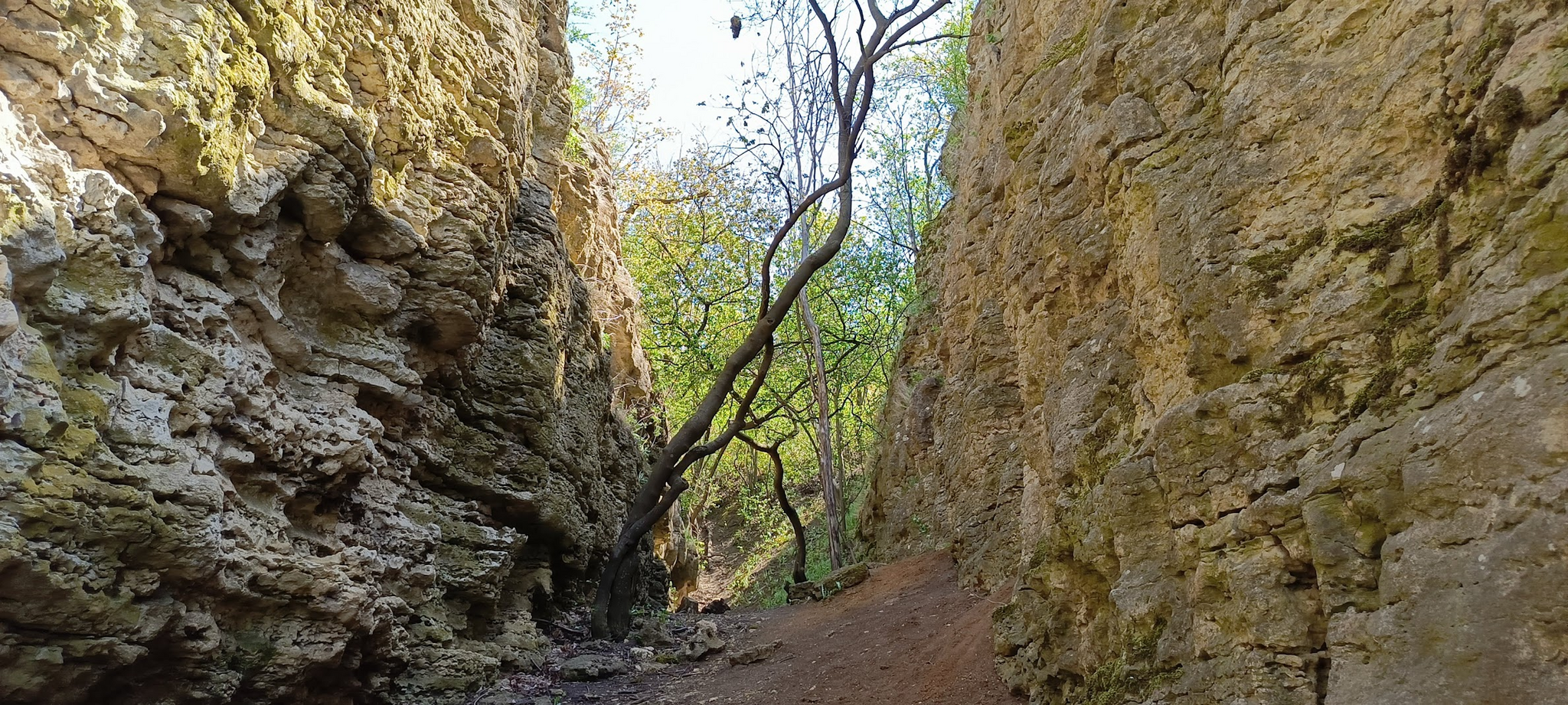 А ещё оттуда можно спуститься вниз через самое настоящее ущелье.