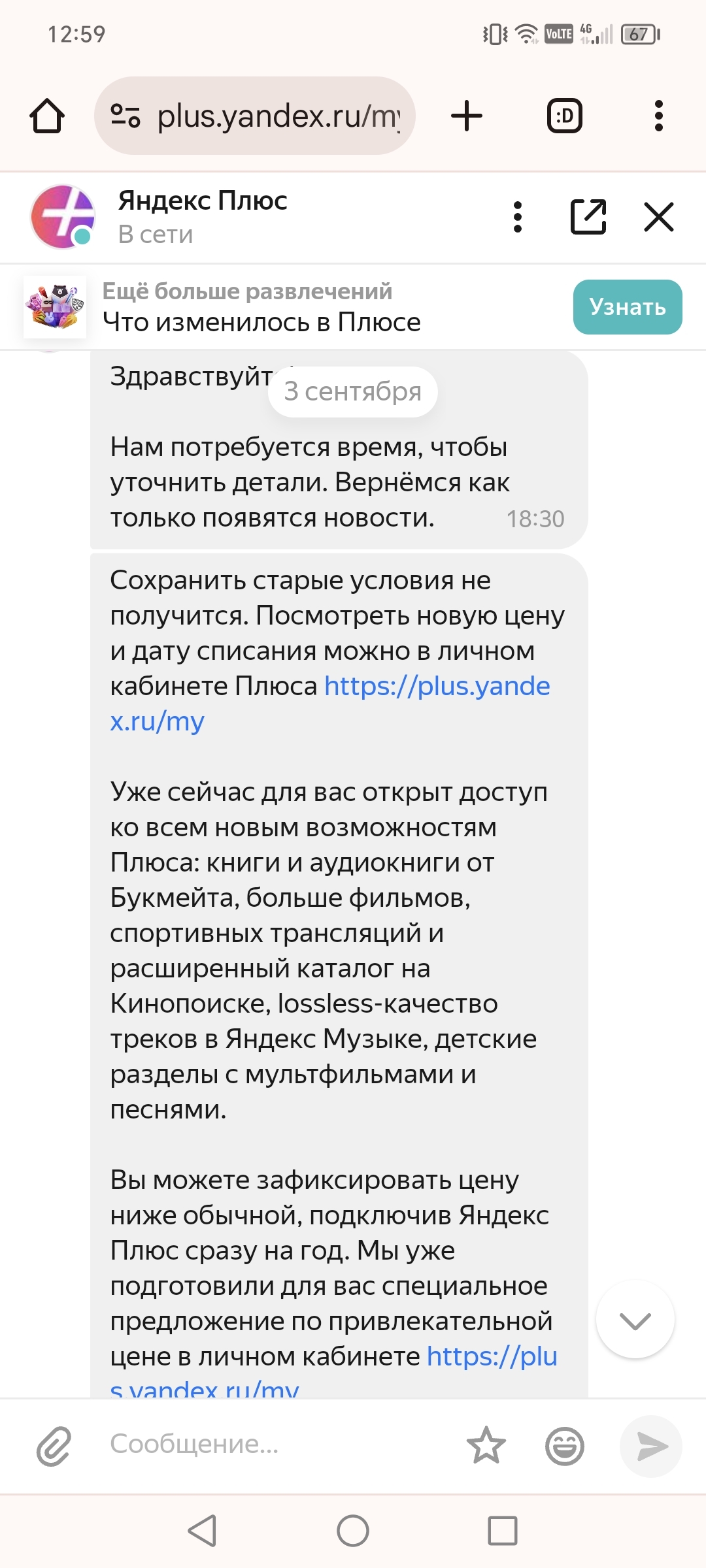 Наткнулась на такой полезный пост, решила тоже попробовать, написала в поддержку Яндекса, мол, оформляла давным-давно подписку, обещали цену не менять. Вот, что мне ответили: