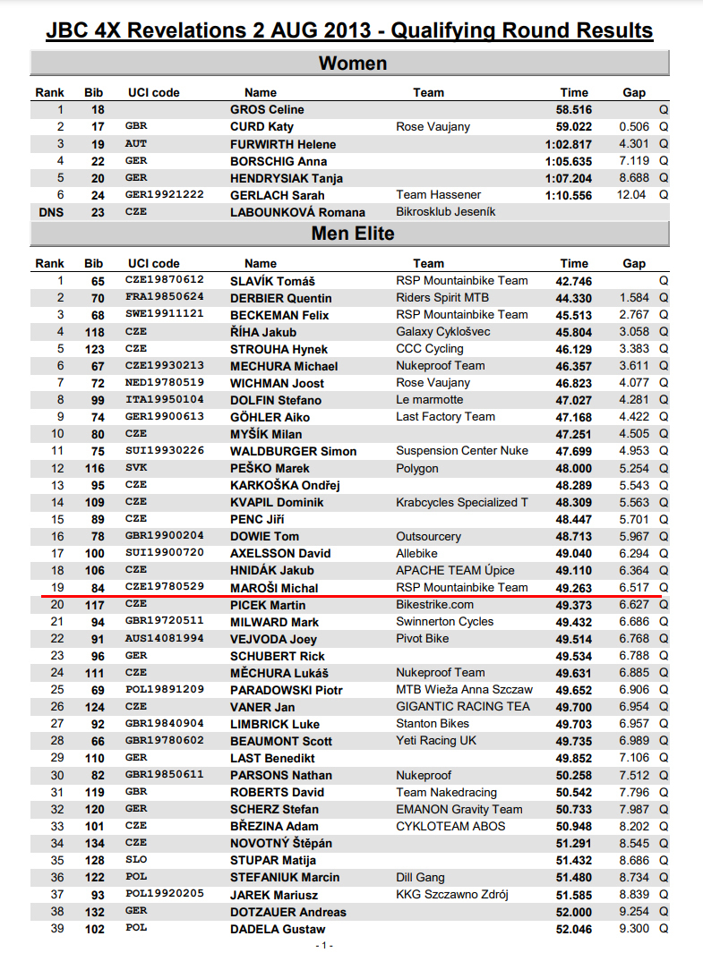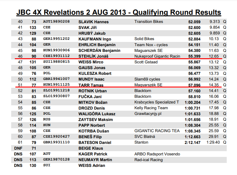 Так вот по итогам квалификации Marosi занимал 19 место из 64, что отзеркалило Stehlik'a Jonas'a на 46 месте.