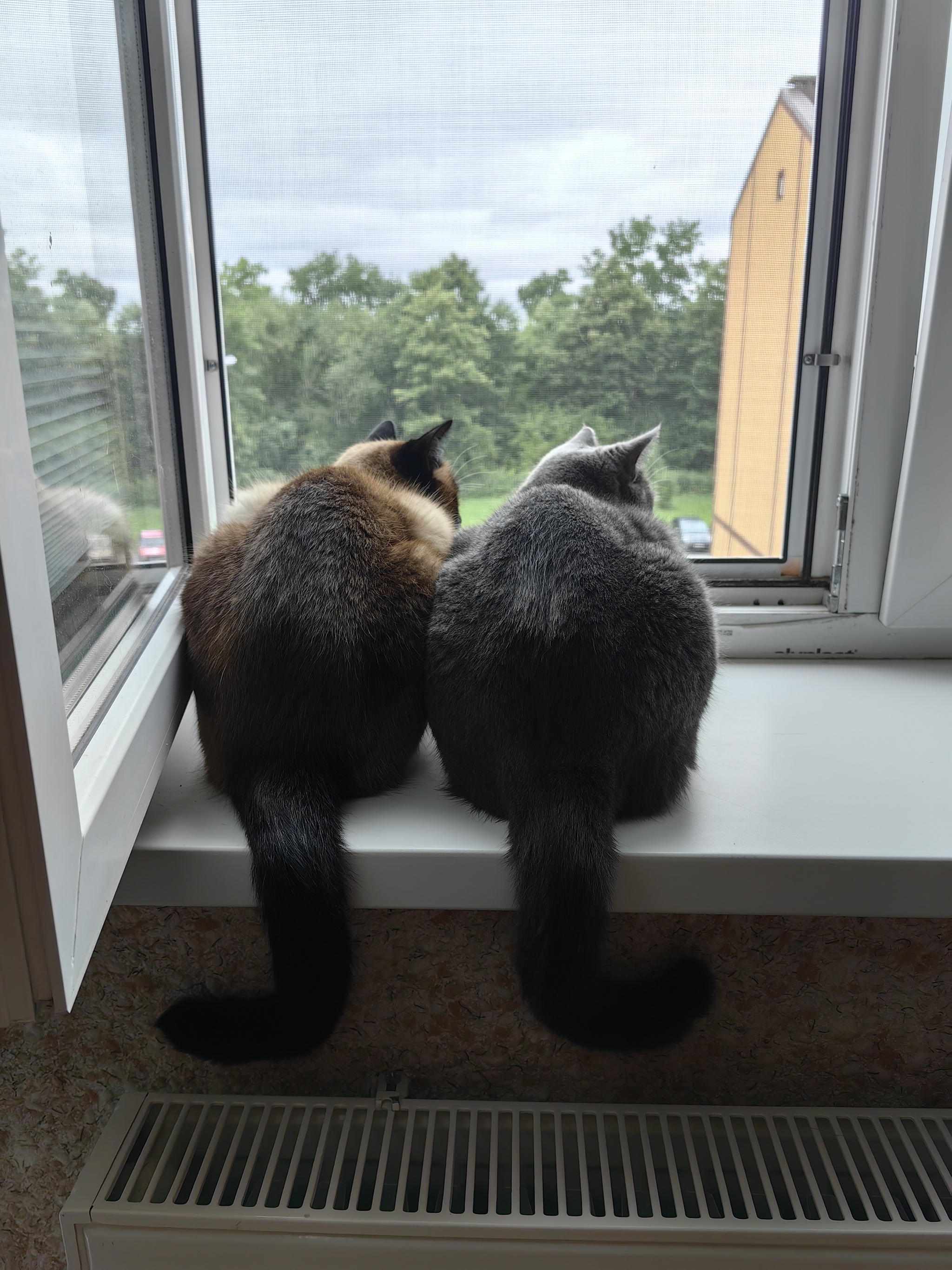 С нашими тоже прекрасная история) В жизни не думала, что будет 2 кота у меня. Подруга котят раздавала, выбрали с мужем беленькую девочку (пацан в итоге оказался и помесь тайского кота). И пока ждали что он от мамки отлучится, судьба настояла на спасении серого бездомыша. Муж по работе поехал в другой город, Яндекс повел его проулками в частном секторе, а там лежит почти бездыханный 2недельный комок посреди дороги. 3 недели каждый день за 25км в ветклинику гоняли, админ сказанула "И зачем ему кличка?", врачи вообще шансов не давали, но кот выкарабкался. И вот 3,5 года раз в пару месяцев обостряется ринотрахеит, уже хроника. Все же очень больным подобрали.