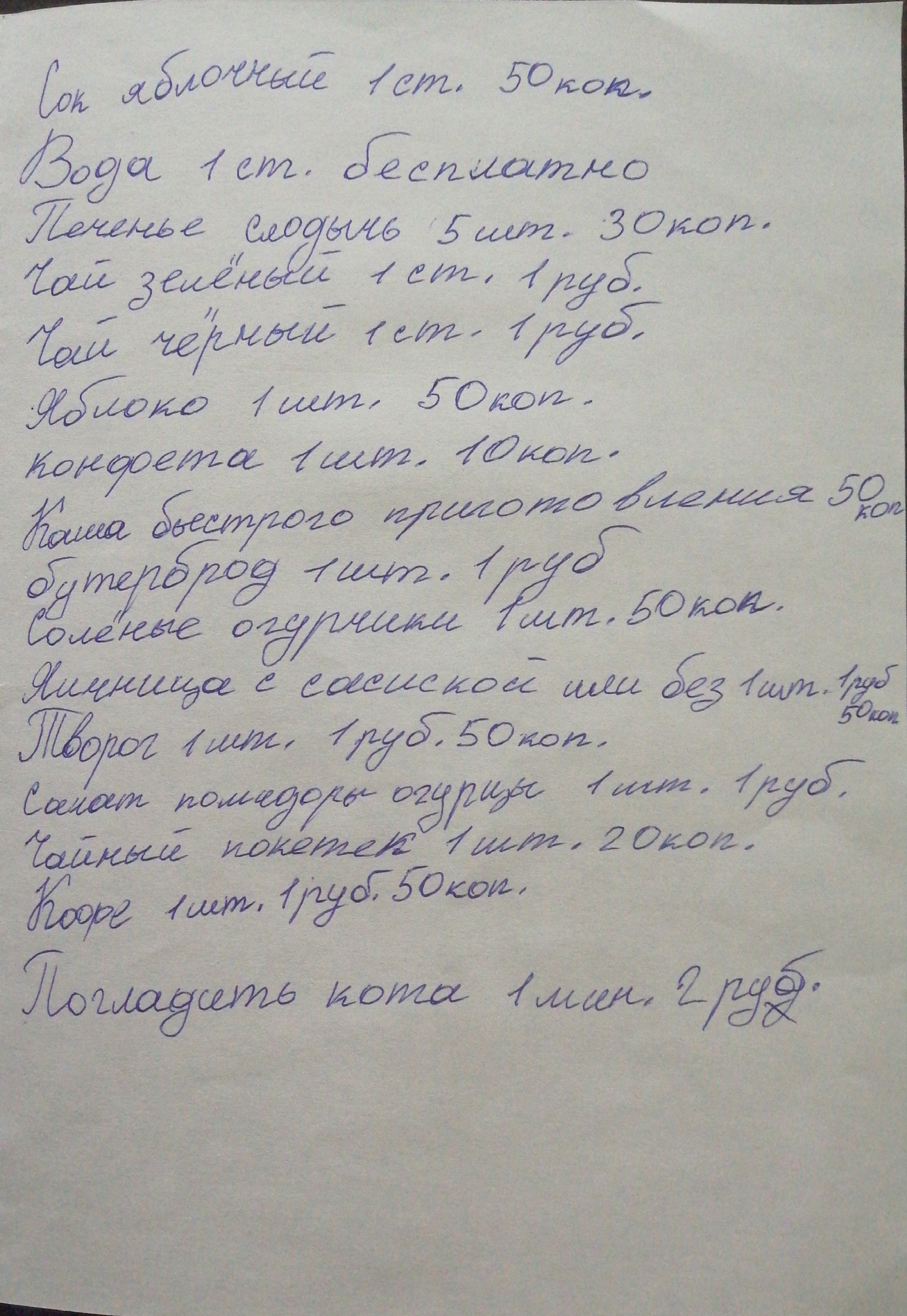 У меня так дочь месяц назад ресторан дома открыла, составила меню и стала продавать продукты из холодильника мне, супруге и младшему брату. Вода бесплатно - все как в элитном заведении. Бизнес пошел в гору, деньги потекли рекой. Но почему-то очень скоро доча загрустила... Ведь к ней по очереди стали ходить налоговая, санстанция и другие проверяющие органы. Нарушения, предписания, штрафы... Закрылся ресторан по итогу. Жизнь. Меню прилагаю. Цены в белорусских рублях. 1BYN примерно 25RUB.