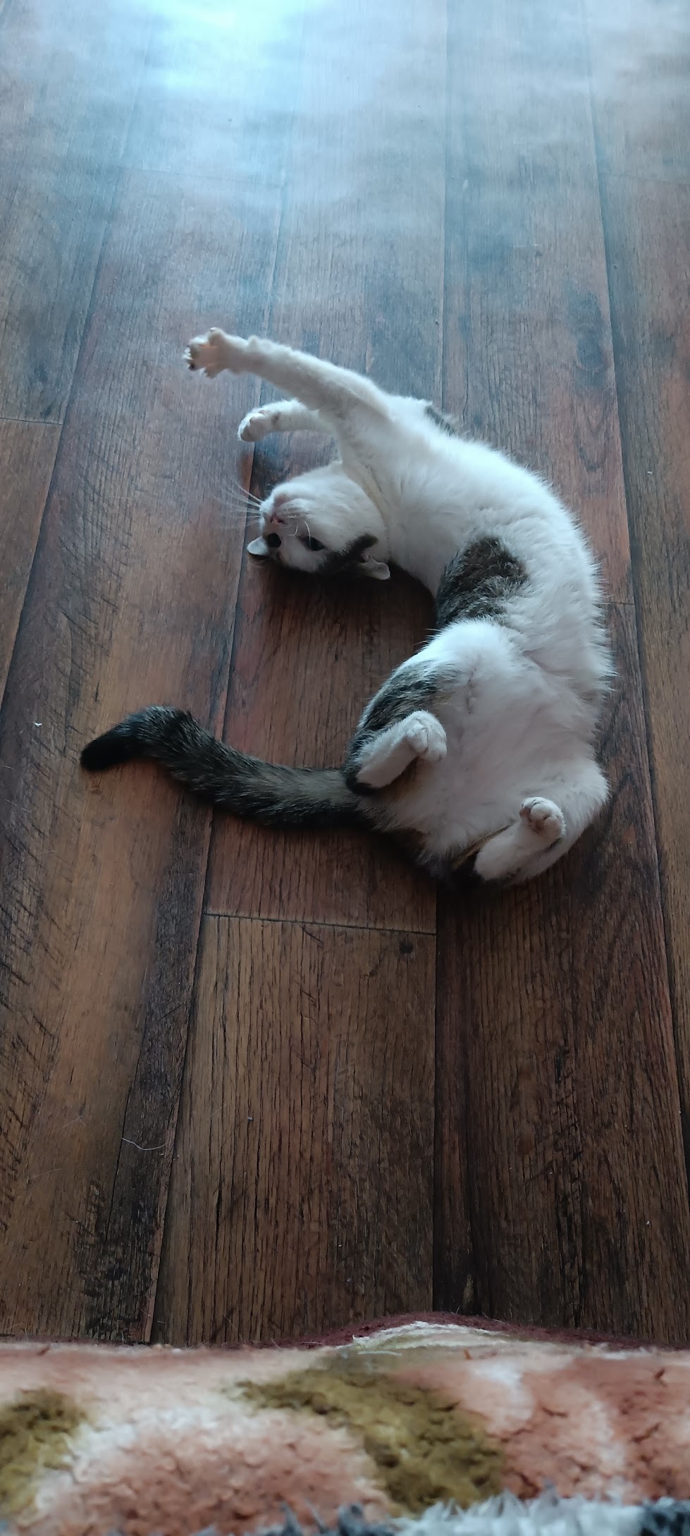 Сладкие потягушки от Мелочи - до нормального имени не дотянула, реально мелкая. Обожает тырить у дочери резинки для волос, отжала у меня кресло-мешок в качестве лежанки, в общем, типичный наглый мелкий кошь.