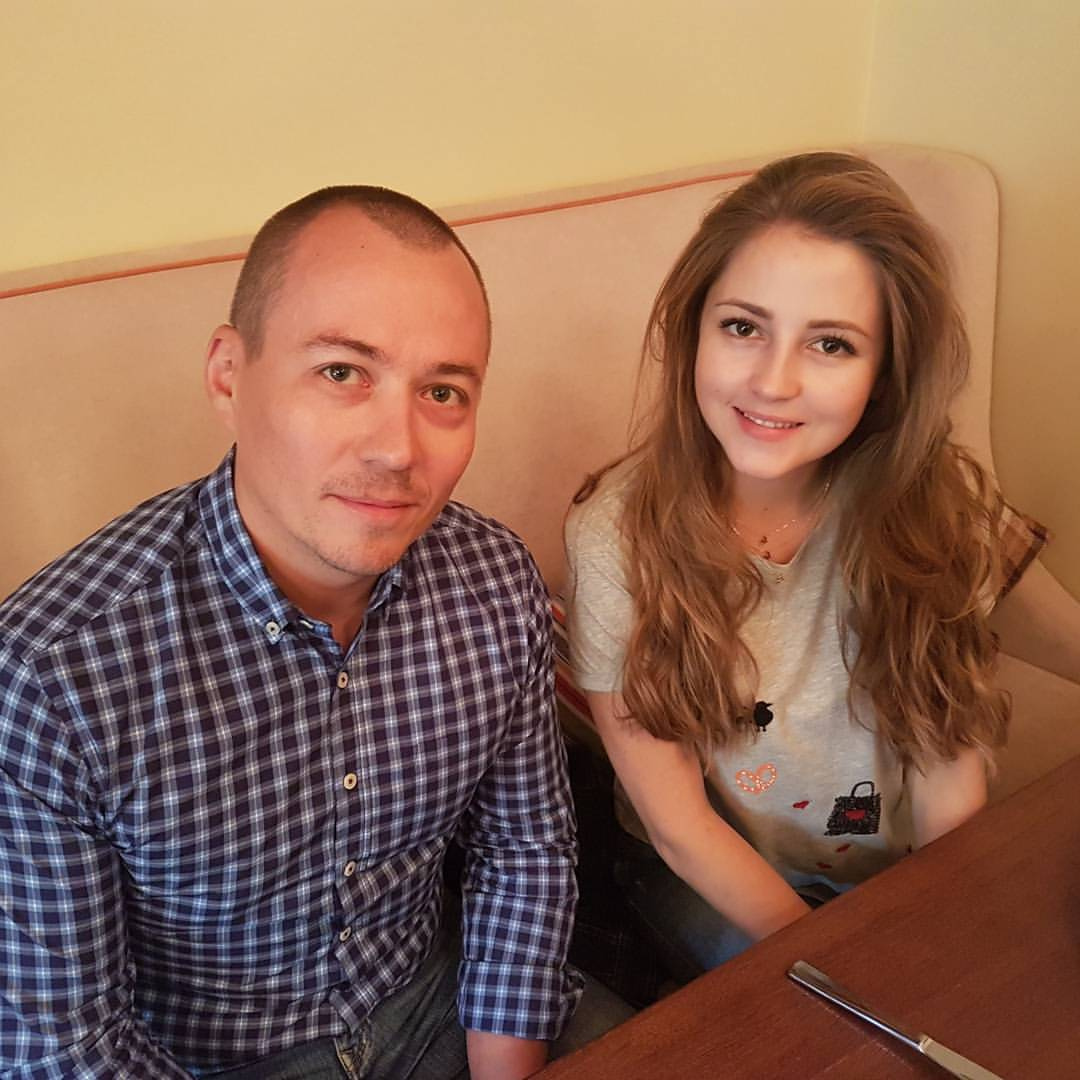 Женат я был тогда первый год, подкаблучником был больше, чем даже сейчас. Дождался, когда у них до кофе дойдет, подошел, извинился, свалил все на жену. А ее сосед говорит - не проблема, давайте я вас сфоткаю вместе. Ну и сфоткал. Очень странно на меня смотрел, что я делал вид, что его не знаю. Это был Анатолий Руденко, тоже из молодых актеров. И вот эту фотку я сохранил. Вообще Михайловская в жизни очень приятная вежливая девушка. Даже не ожидал.