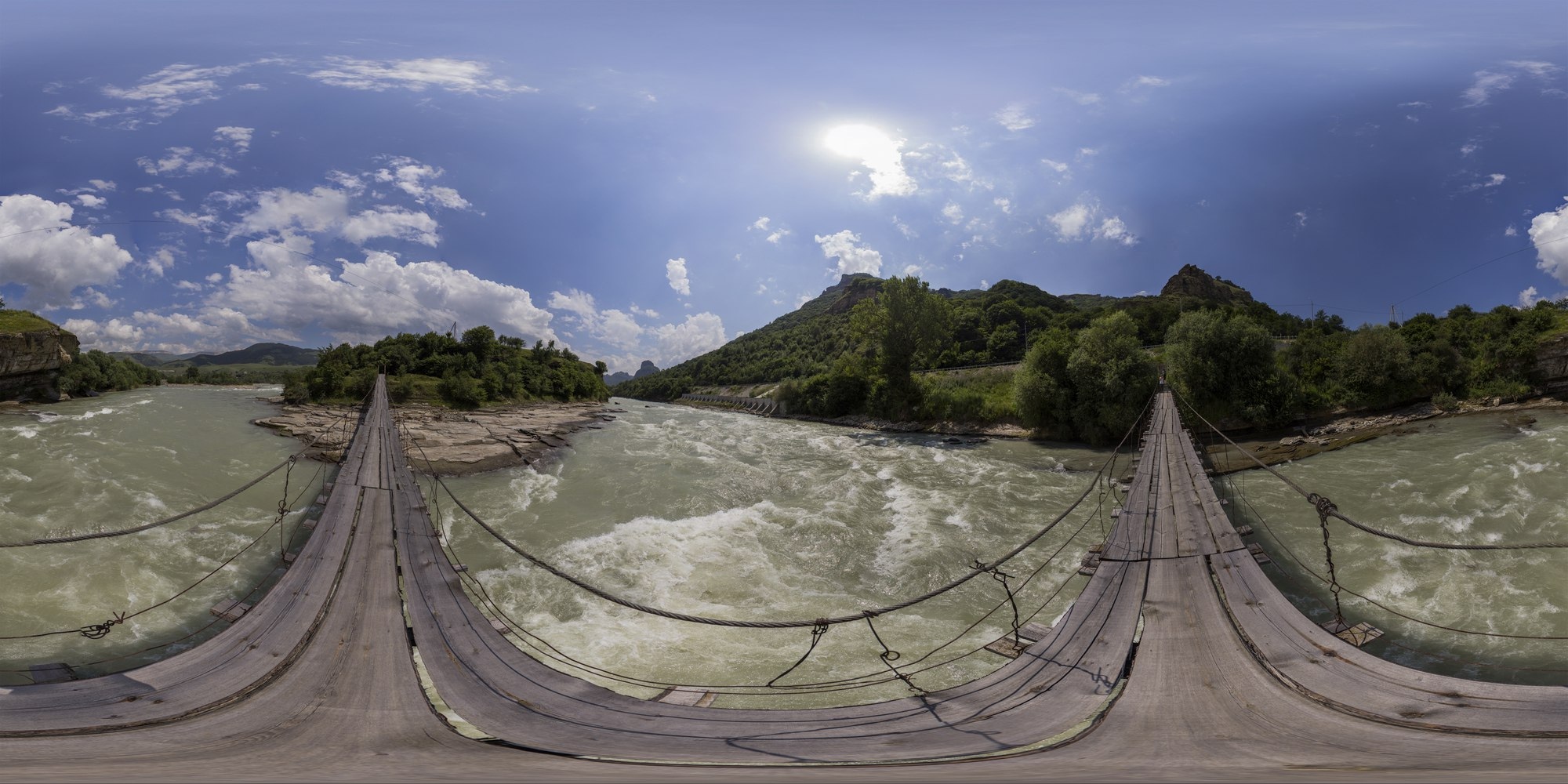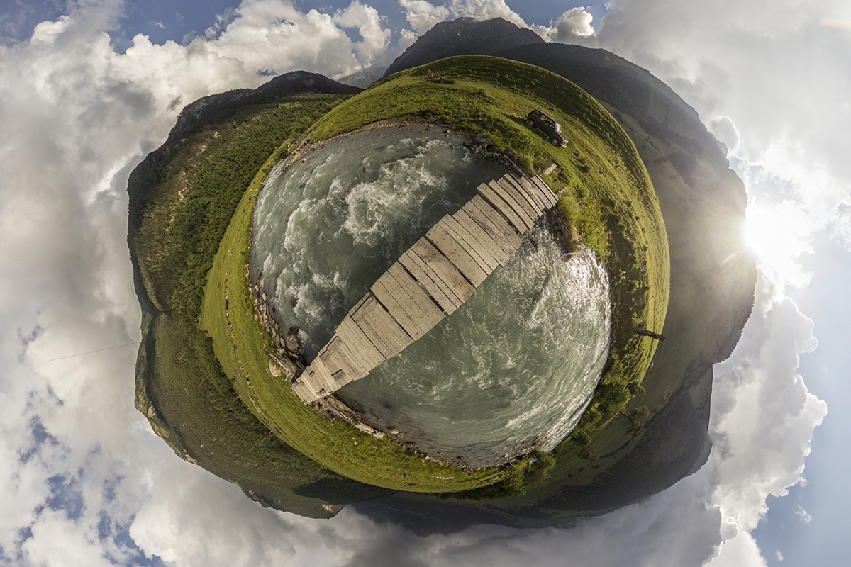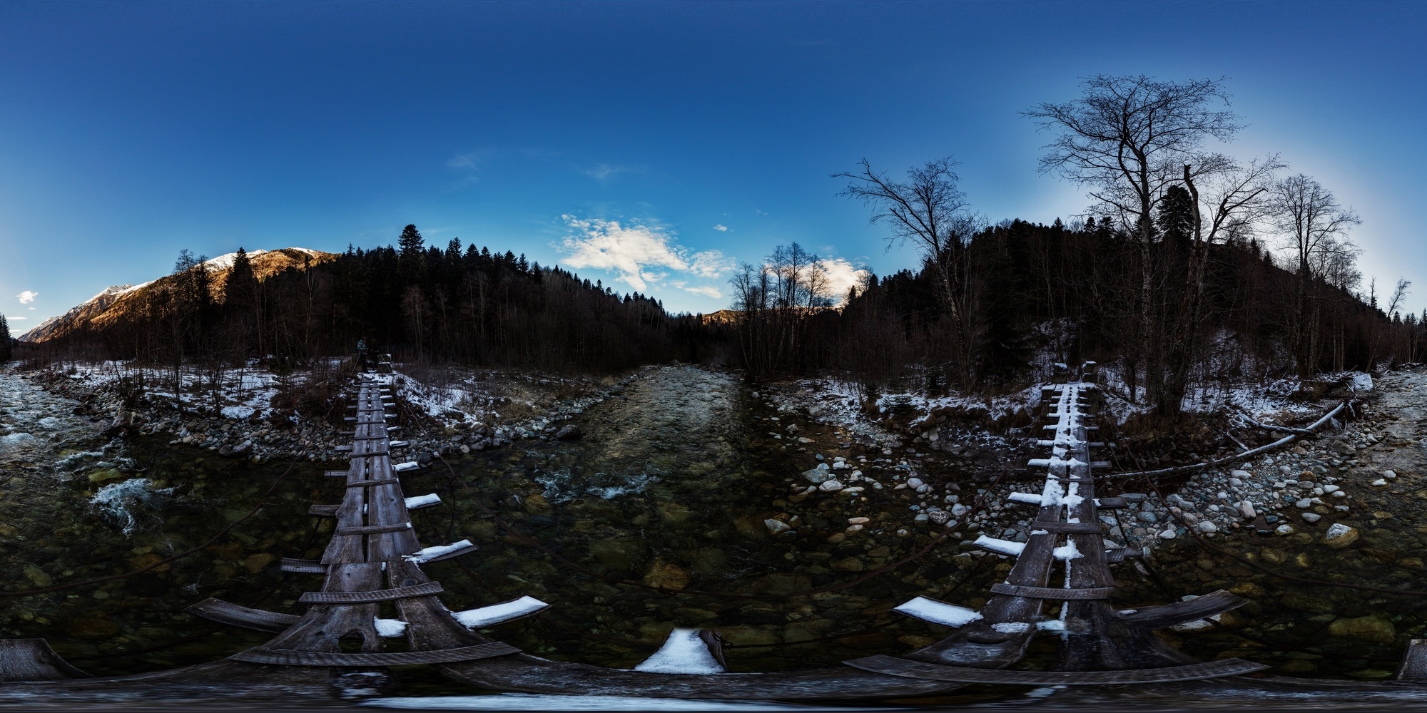Мостик через реку Маруха, панорама в проекции "маленькая планета"