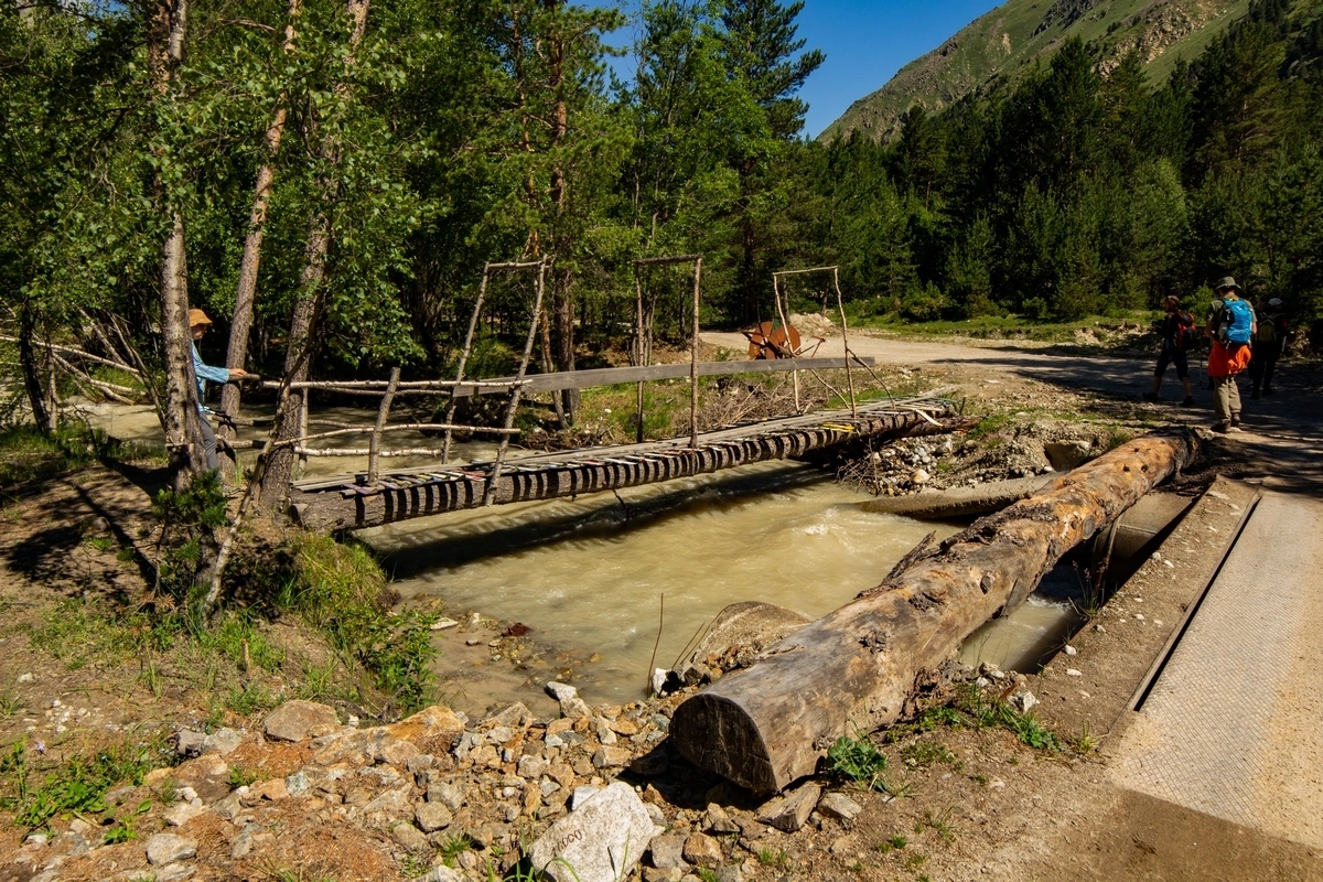 Мост где-то по дороге к Дамхурцу. На фото не так уж заметно, но расстояние между балками такое, что нога провалится