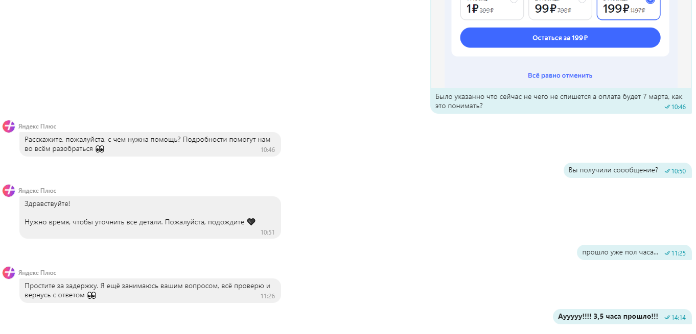 Решил я значит отменить их подписку которая заканчивается 7 марта, ибо стоит почти 400 рябчиков а толку особо нехера, музыки стало мало, а про кино вообще молчу. Как всем известно, во время отмены подписки яндекс предлагает оформить со скидкой на срок 1, 2 и 3 месяца.