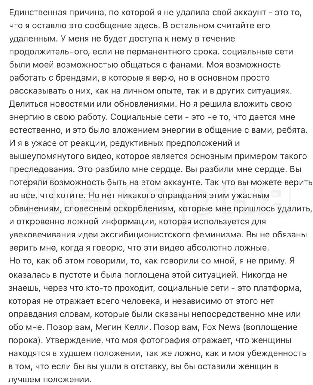 Ну к слову, забулили звёздочку не хило так. Она попрятала фотки в инсте(оставила пару) и оставила послание хейтерам, мне в момент стало даже жалко её если честно: