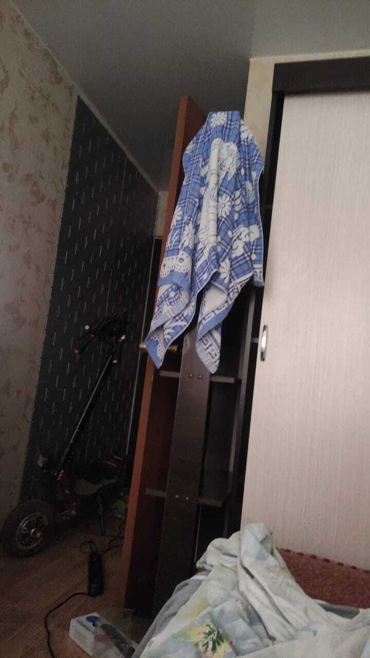 где самотык стоит за ним прямо вход. Где дверь открыта это типа кухня душ и туалет. Ну и соответственно диван с которого фотка сделана, а за ним окно. Слева стол с нубуком и холодильник. По площади и размещению всего +- такая же комната как и в посте