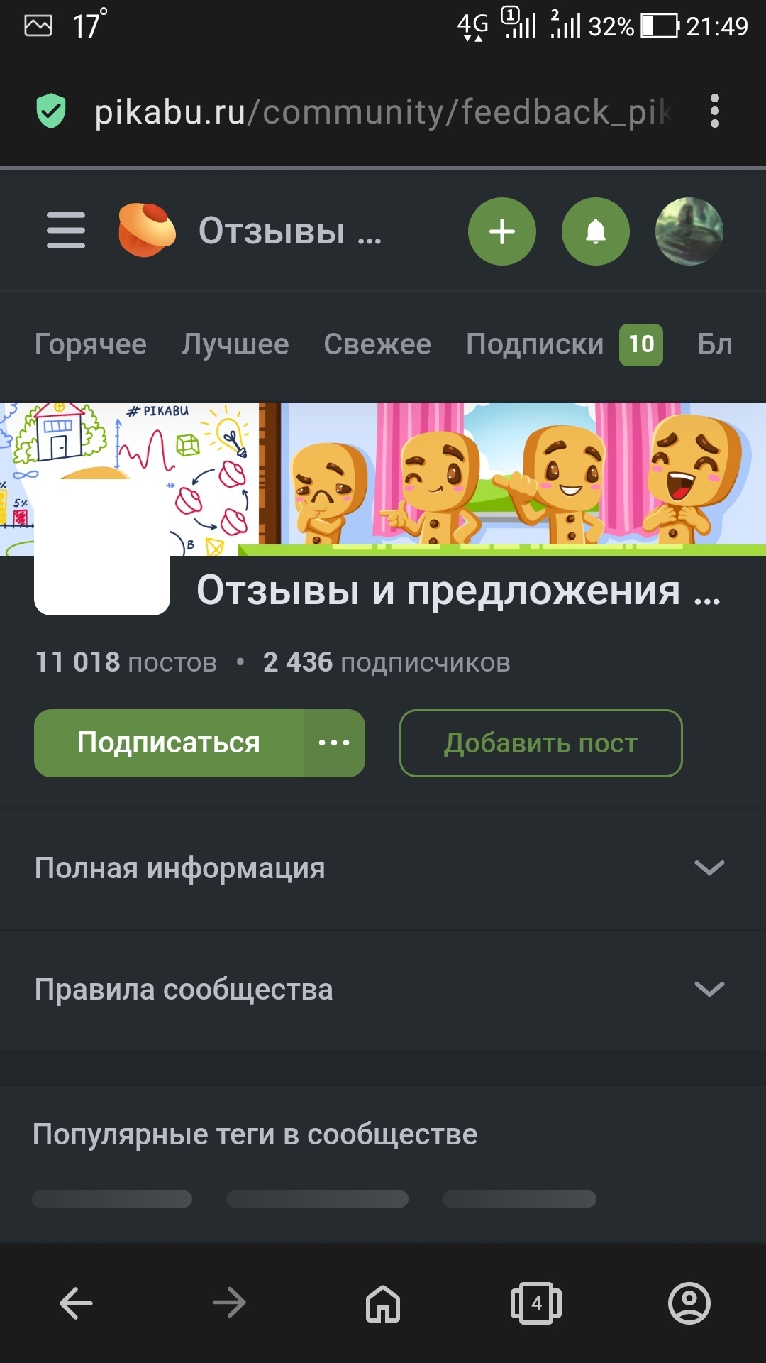На него много кто подписан, но далеко не все. У него вышел новый комикс, но он в закрытом сообществе, которое никто не видит кроме подписчиков.