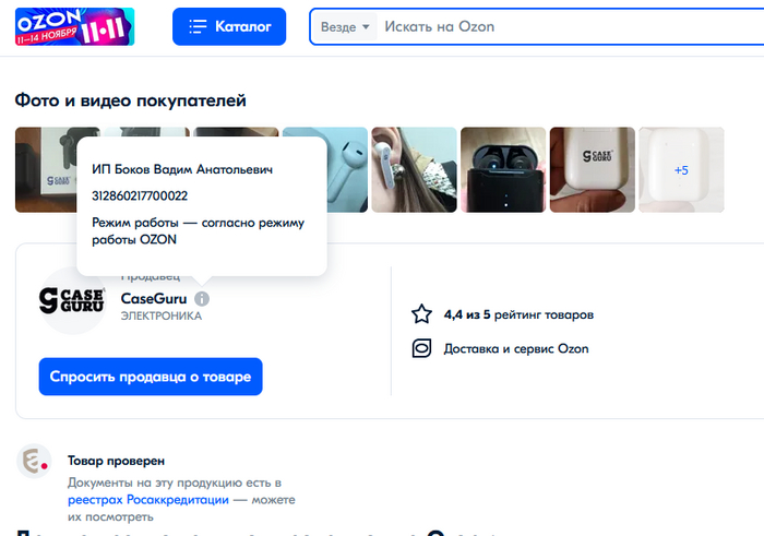 На самом деле в случае с тюменским илоном никаких догадок строить и не нужно, он сам же дает ссылку на китайских OEMщиков. Достаточно зайти в официальный магазин CaseGuru на ozon, где видно, что продает их ИП Боков Вадим Анатольевич, который предоставил туда сертификат соответствия.